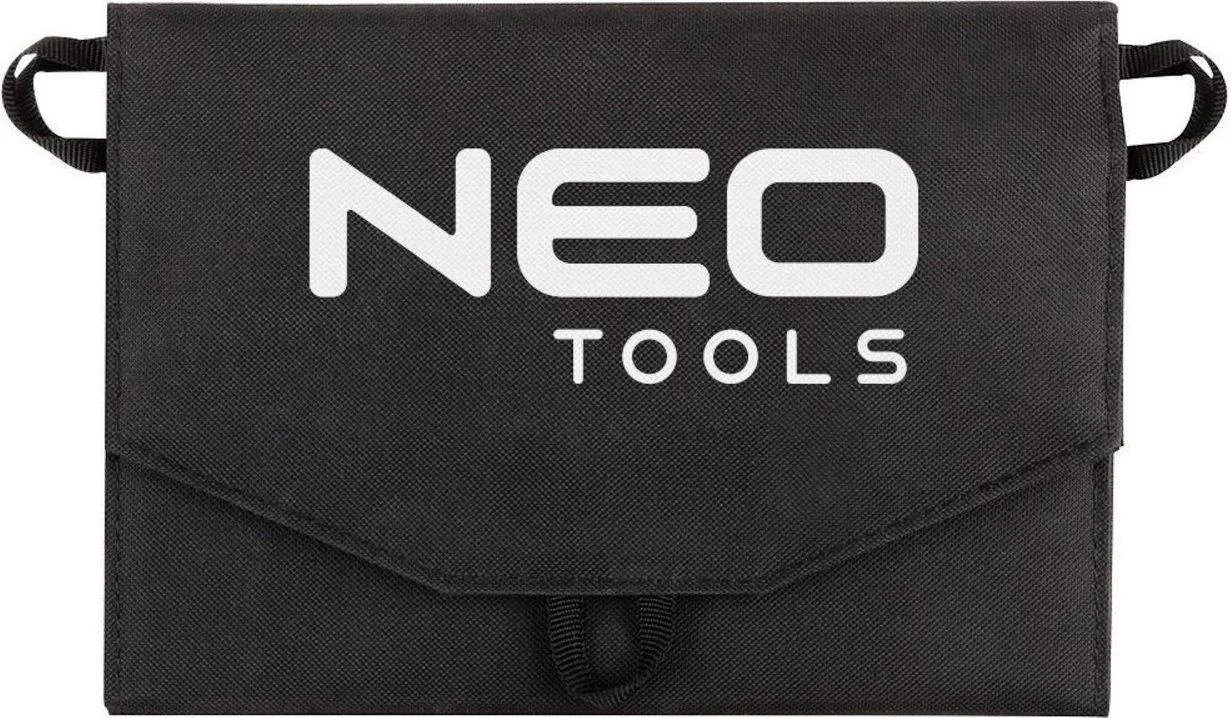 Набір Neo Tools складається з бензинового генератора потужністю 3 кВт із системою AVR та портативної сонячної панелі 15 Вт. Це автономне рішення для забезпечення електроживлення в побуті, на природі чи під час відключень електроенергії. Генератор забезпечує стабільну напругу 230 В, а складна сонячна панель дозволяє заряджати мобільні пристрої через два USB-виходи.