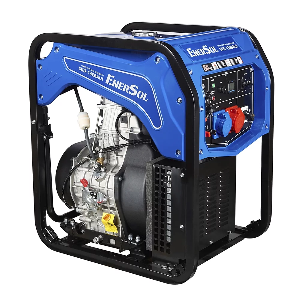 Інверторний дизельний генератор EnerSol SKD-13EBAUI створений для стабільного живлення у побуті й на об’єктах з підвищеним навантаженням. Двигун потужністю до 13 кВт та електростартер забезпечують легкий запуск і сталу роботу. Модель підтримує напругу 230 В або 400 В, що робить її універсальною для різних систем. Завдяки коліщатам і компактному формату пересування генератора не потребує зусиль.