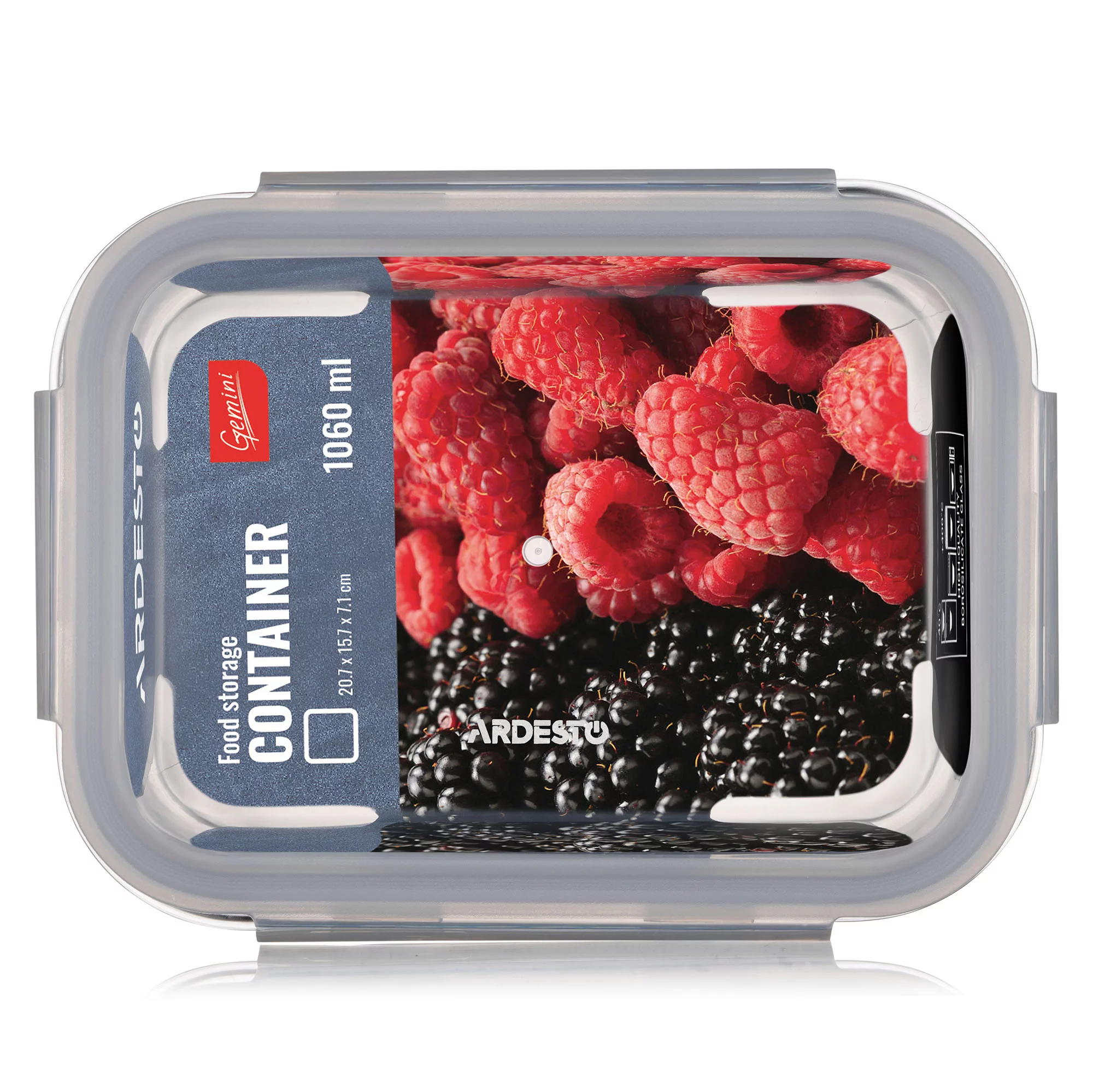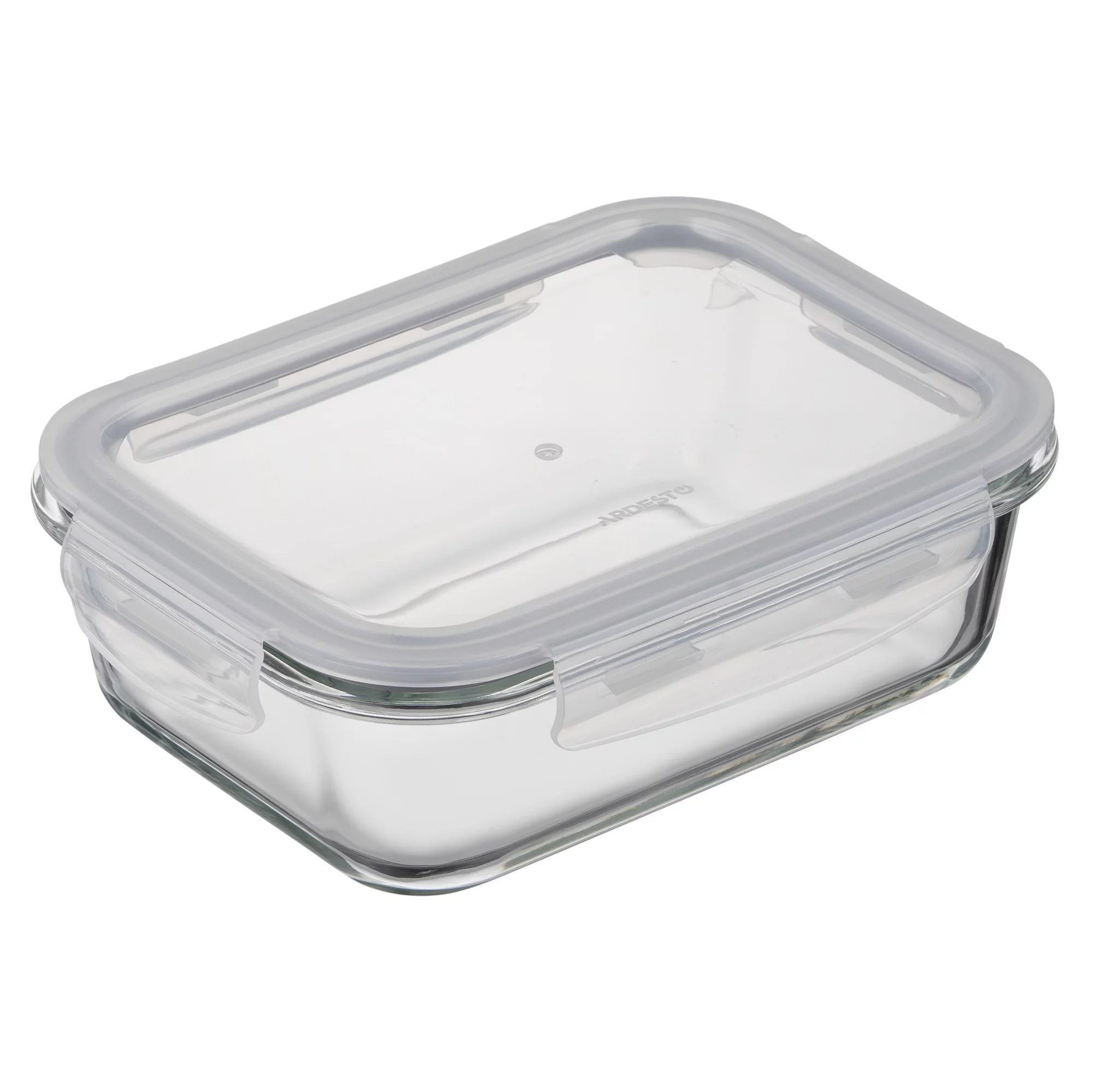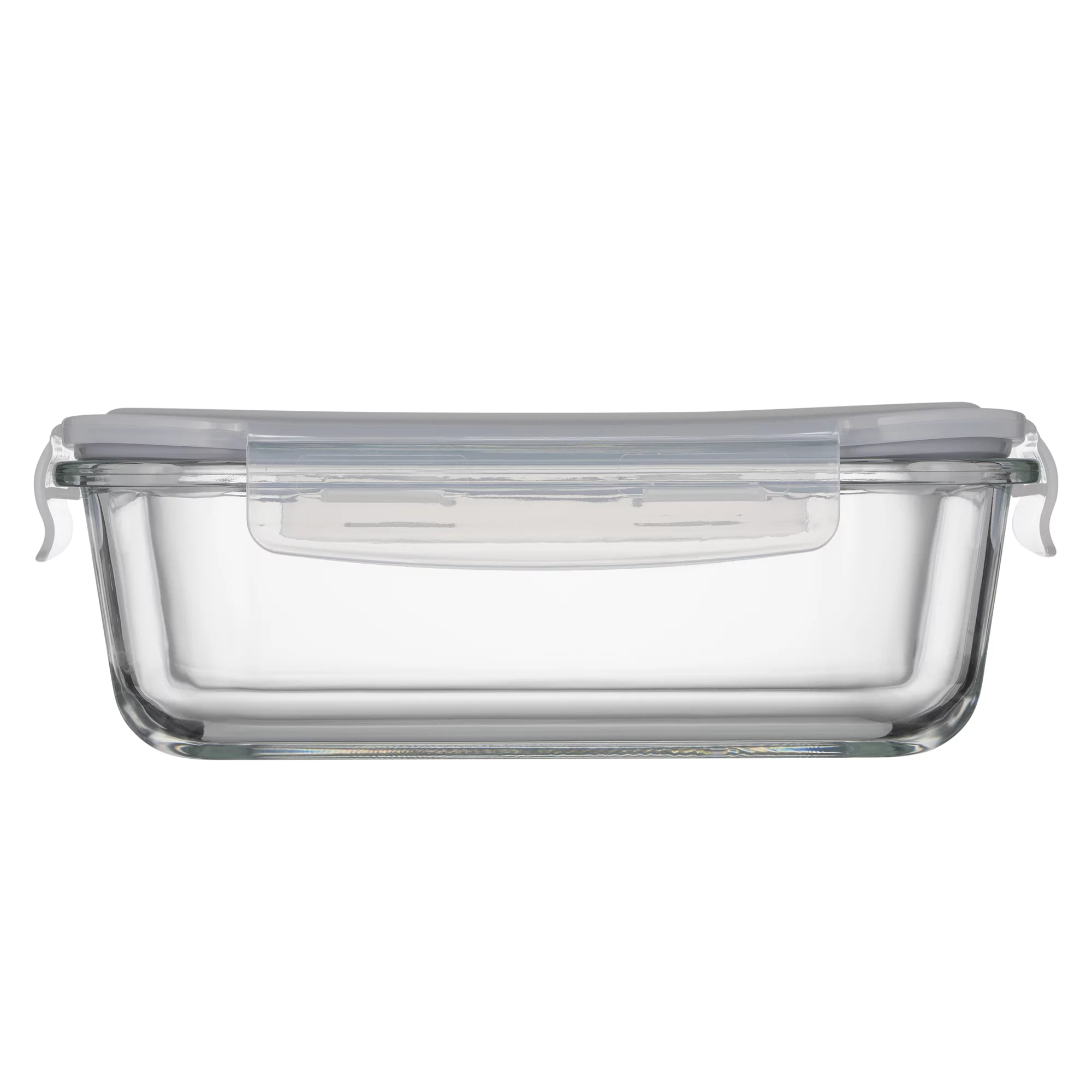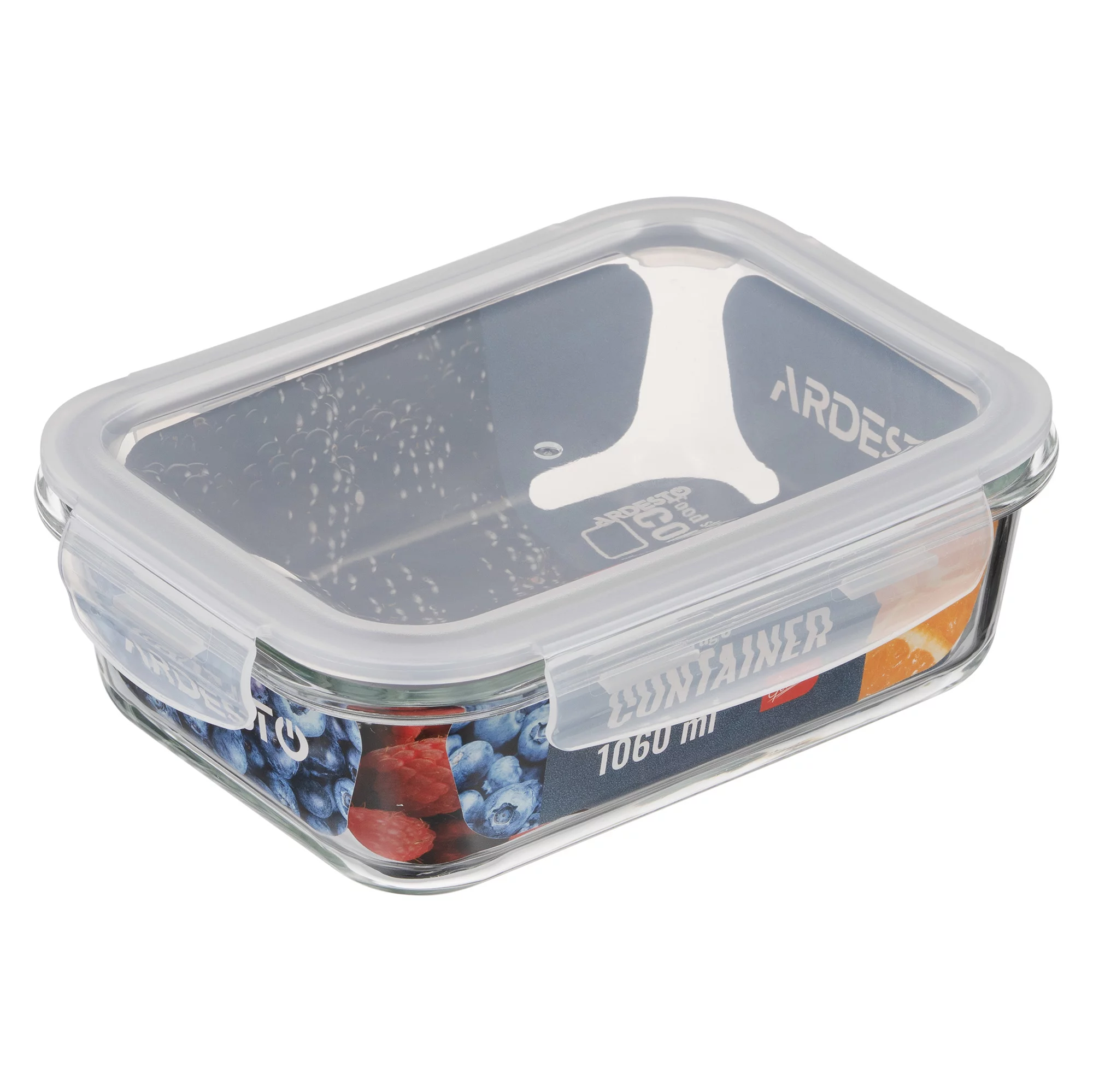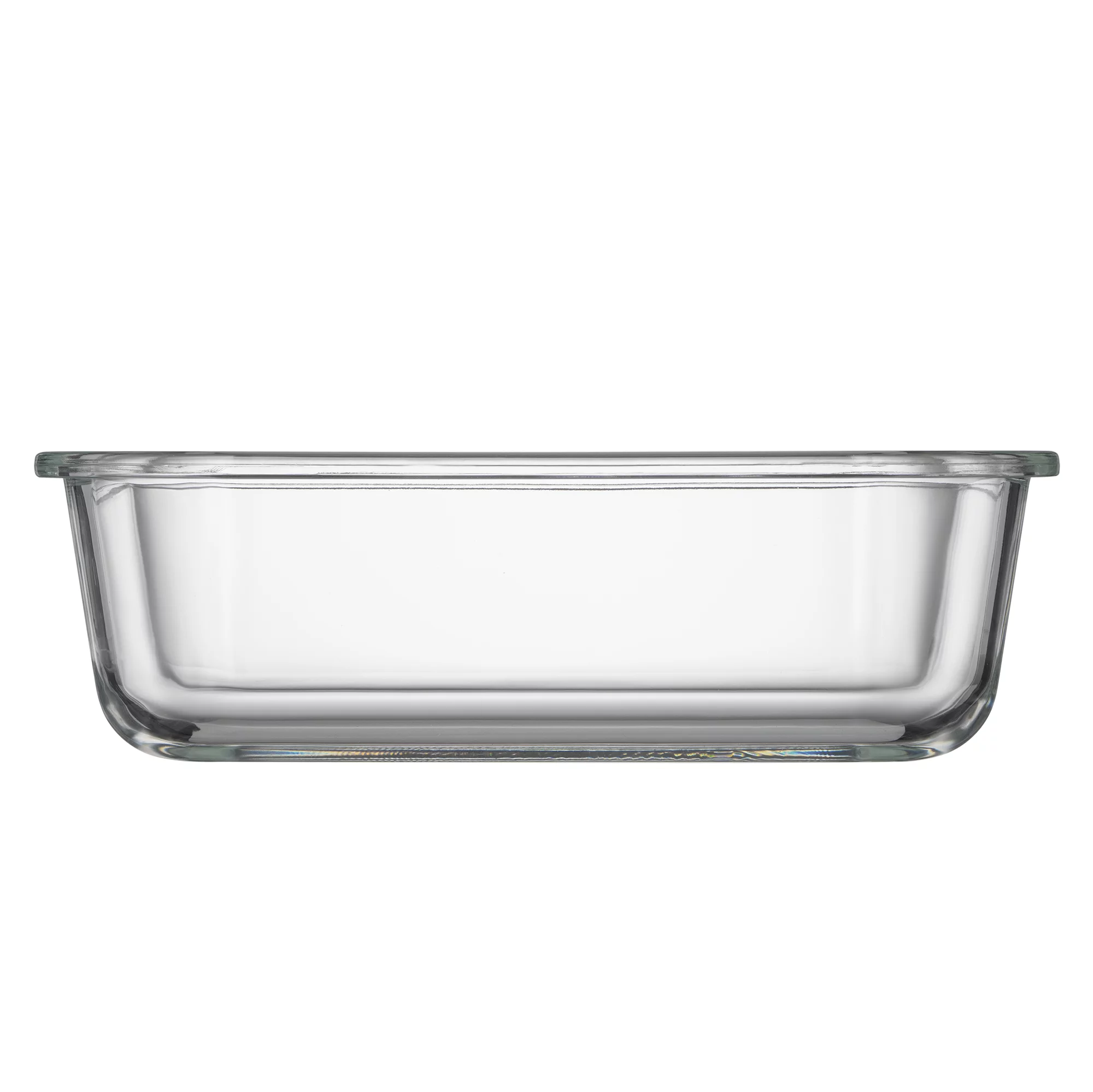 Контейнер об’ємом 1 л виготовлено з екологічного боросилікатного скла, яке не вбирає запахів, зберігаючи аромат і смак продуктів, та гарантує довговічність виробу. Пластикова кришка забезпечує герметичність. Завдяки термостійкості виробу його можна залишати в морозильній камері, холодильнику, використовувати для підігрівання страв в мікрохвильовій печі або приготування в духовій шафі (без кришки). Розмір контейнера – 20,7 × 15,7 × 7,1 см. Виріб легкий у догляді – його можна мити в посудомийній машині. У контейнері зручно як зберігати страви або продукти вдома, так і брати з собою в офіс чи в подорож.