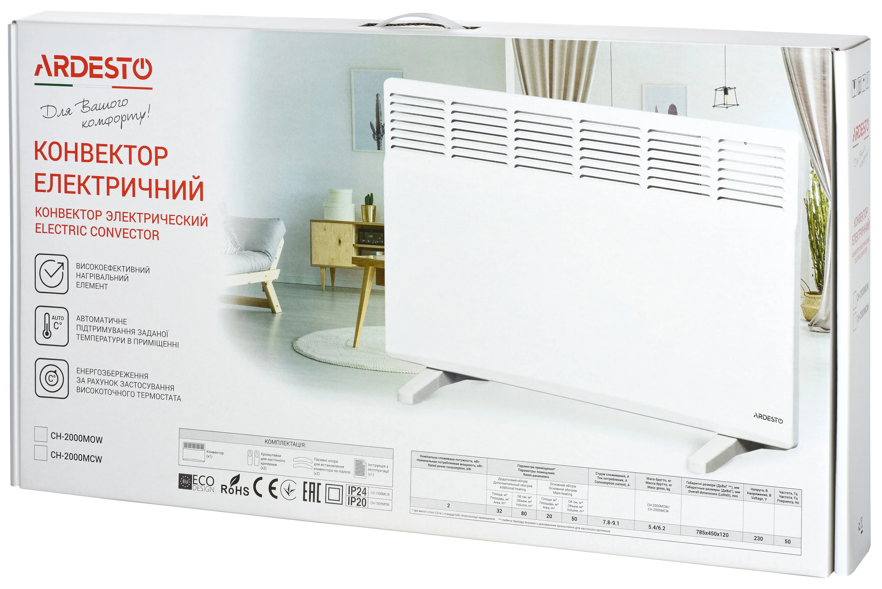 Електричний конвектор з механічним управлінням і двома рівнями потужності – 1000/2000 Вт. Розрахований на обігрів 20 м2. Конвектори Ardesto підтримують два типи монтажу – настінний і підлоговий. Кронштейни та опори поставляються в комплекті з обігрівачем.