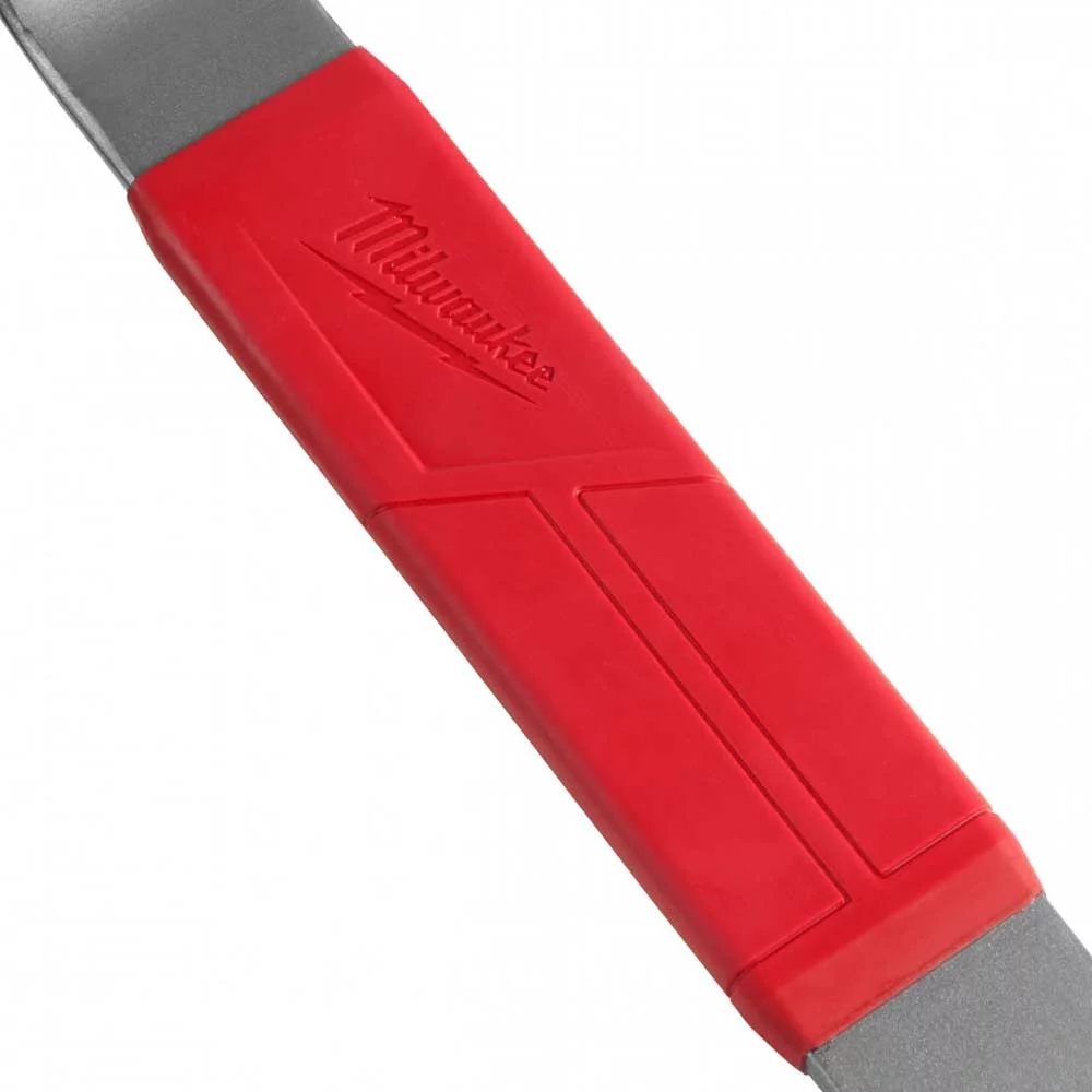 Лом-цвяходер Milwaukee 4932478253 довжиною 305 мм з пластиковим руків'ям є інструментом для демонтажу цвяхів та підняття матеріалів. Виготовлений з міцної сталі з пластиковим покриттям для комфорту та захисту від ковзання. Компактний дизайн вагою 0,45 кг зручний для транспортування. Цей виріб пасує до будівельних робіт та ремонту.