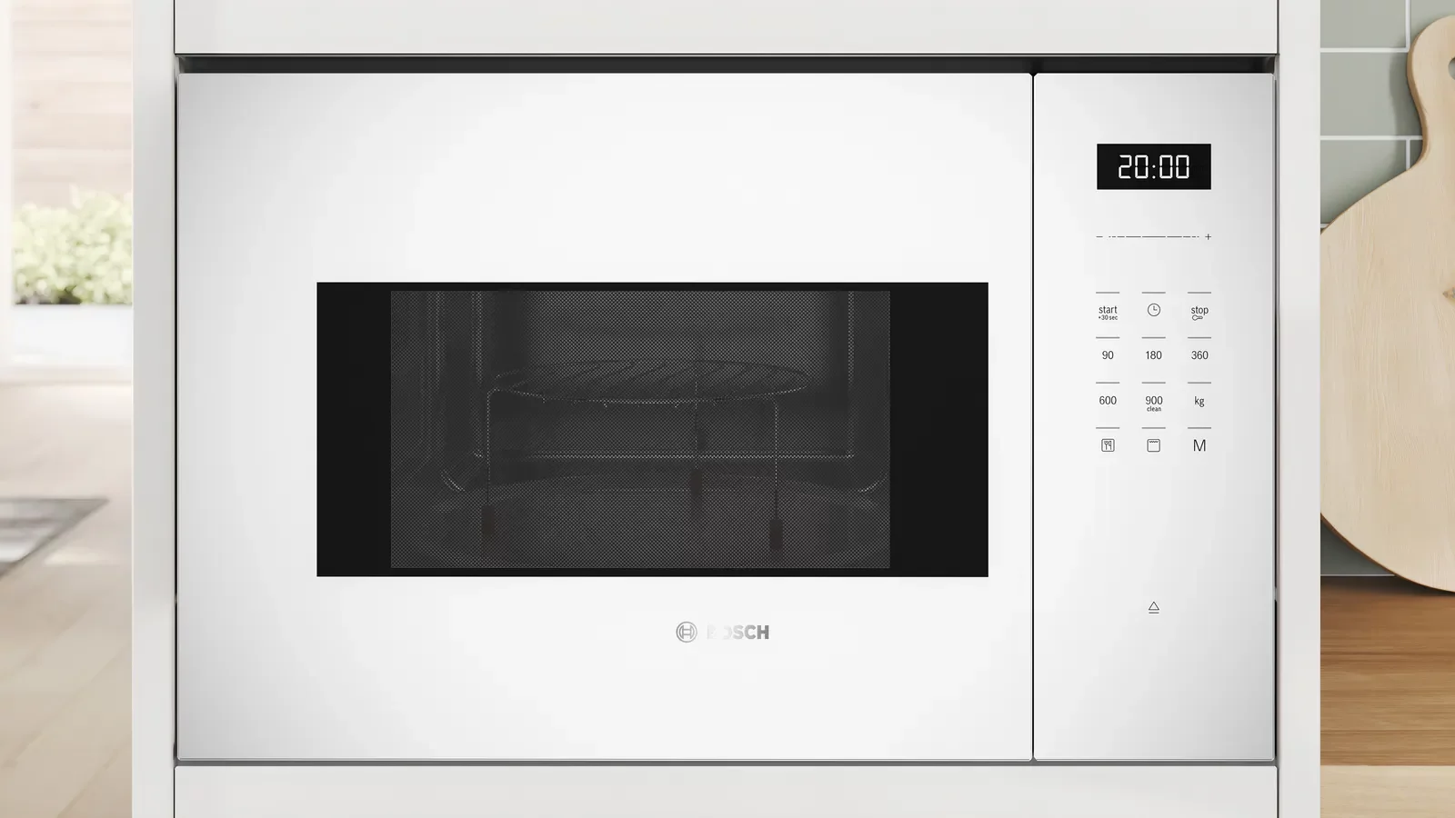 Вбудована мікрохвильова піч Bosch BEL554MW2 — 25 л, 900 Вт, гриль, сенсорне керування та дисплей. AutoPilot 8 автоматично підбирає режим, температуру й час за вагою страви. Швидкий старт на 30 секунд запускає максимальну потужність одним натисканням. Екоочищення парою (вода + крапля миючого) пом’якшує забруднення для швидкого протирання.