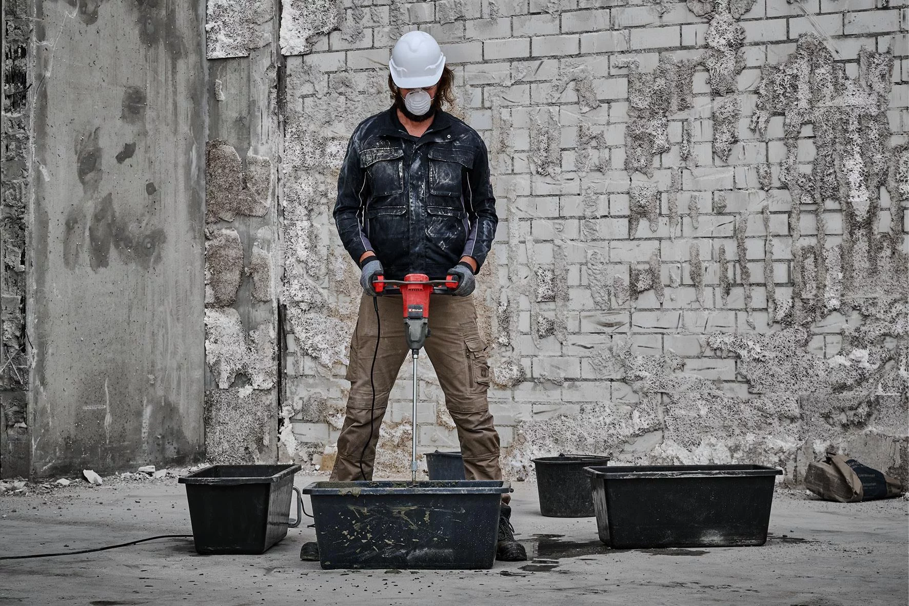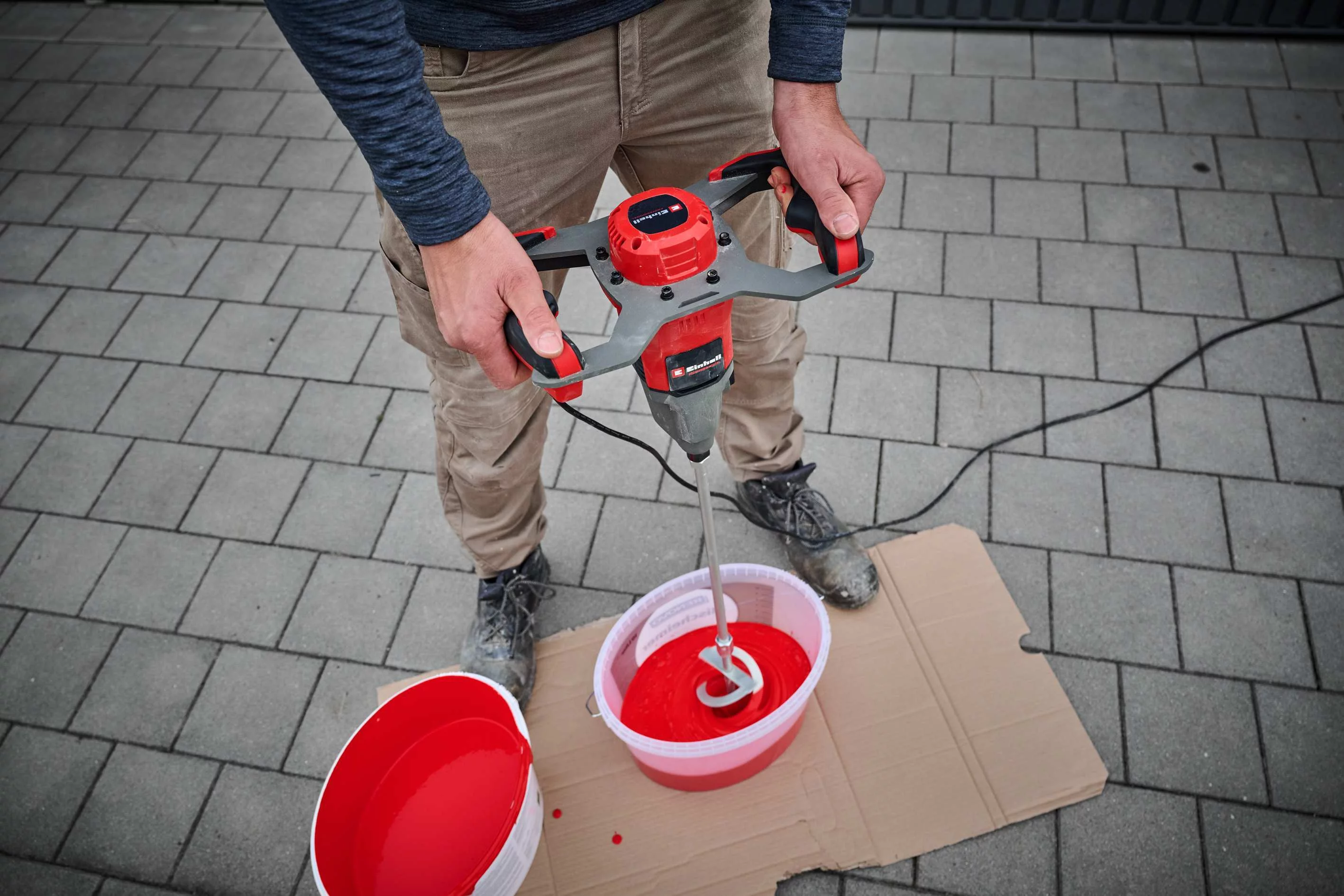 Будівельний міксер Einhell Professional TP-MX 1700-2 CE на 1700 Вт для змішування фарб, штукатурок, клеїв, розчинів і гіпсу. Двошвидкісний редуктор у міцному алюмінієвому корпусі забезпечує високий крутний момент і швидкість до 750 об/хв. Електронне регулювання з плавним пуском дає змогу підібрати оберти під консистенцію суміші та почати роботу без розбризкування. Ергономічна рукоятка і продумана довжина міксера дозволяють працювати у зручному вертикальному положенні.