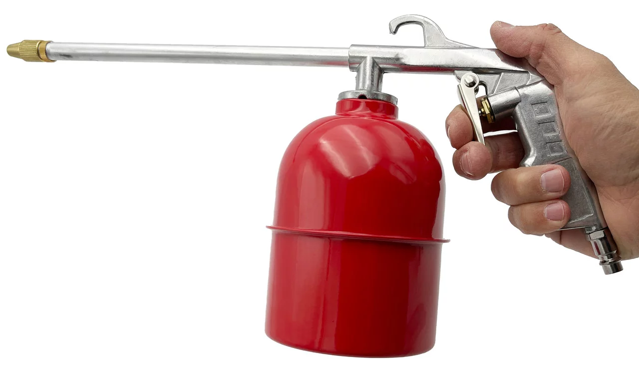 - Пістолет для нанесення рідин з нижнім бачком — підходить для мийних рідин, антикорозійних засобів тощо.
