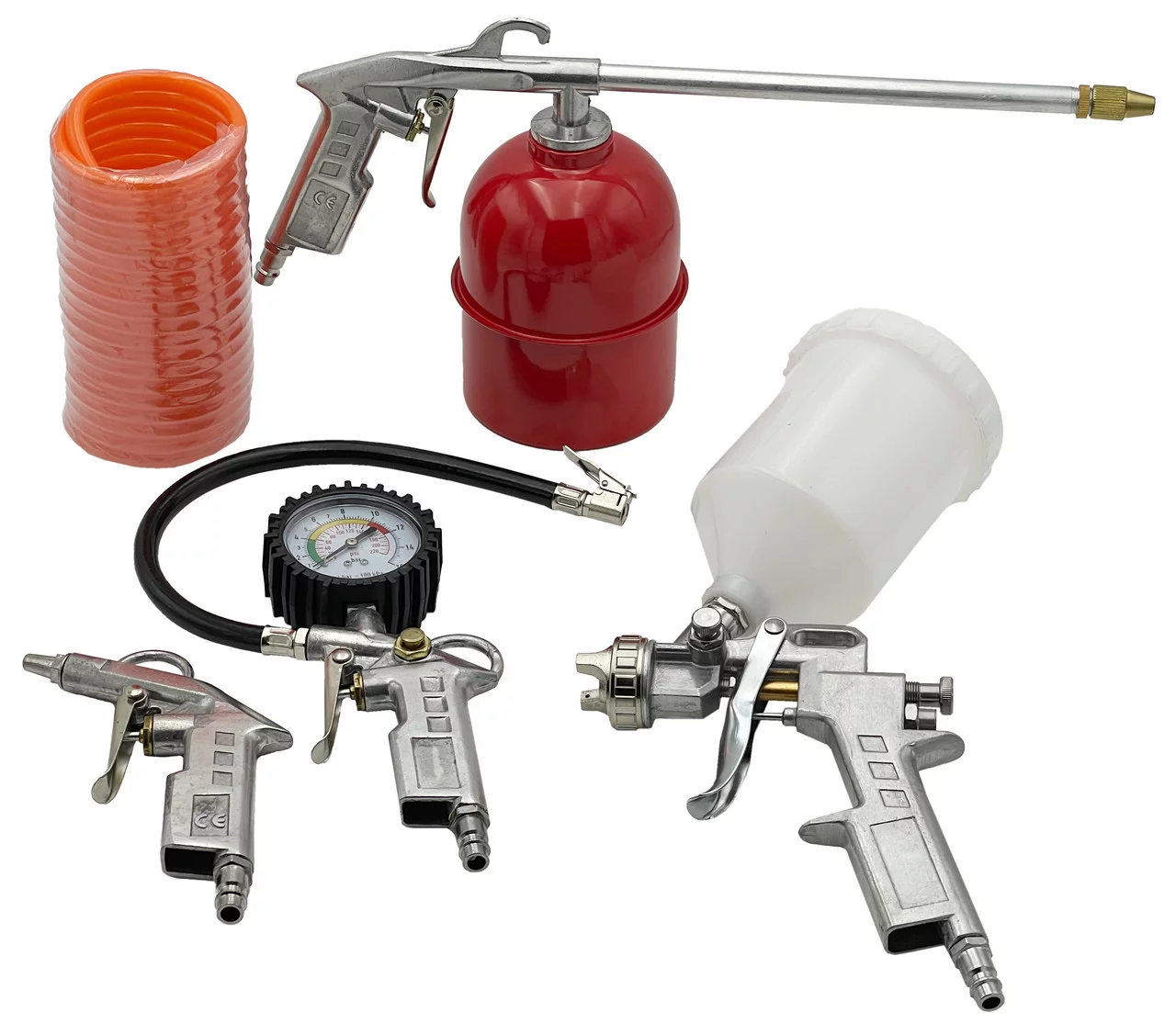 Універсальний пневматичний набір AIRKRAFT AIR5PCS включає в себе все необхідне для фарбування, очищення та обслуговування за допомогою компресора. Ідеально підходить для домашньої майстерні, гаража або невеликої автомайстерні.