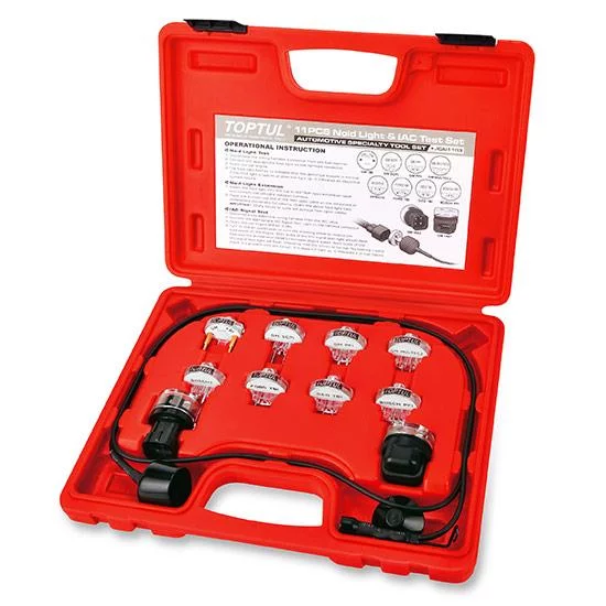 TOPTUL JGAI1103 — професійний набір для швидкої та точної перевірки електронного сигналу систем упорскування пального (EFI) та клапанів регулювання холостого ходу (IAC). Допомагає виявити несправності при відмові запуску двигуна або його нестабільній роботі.