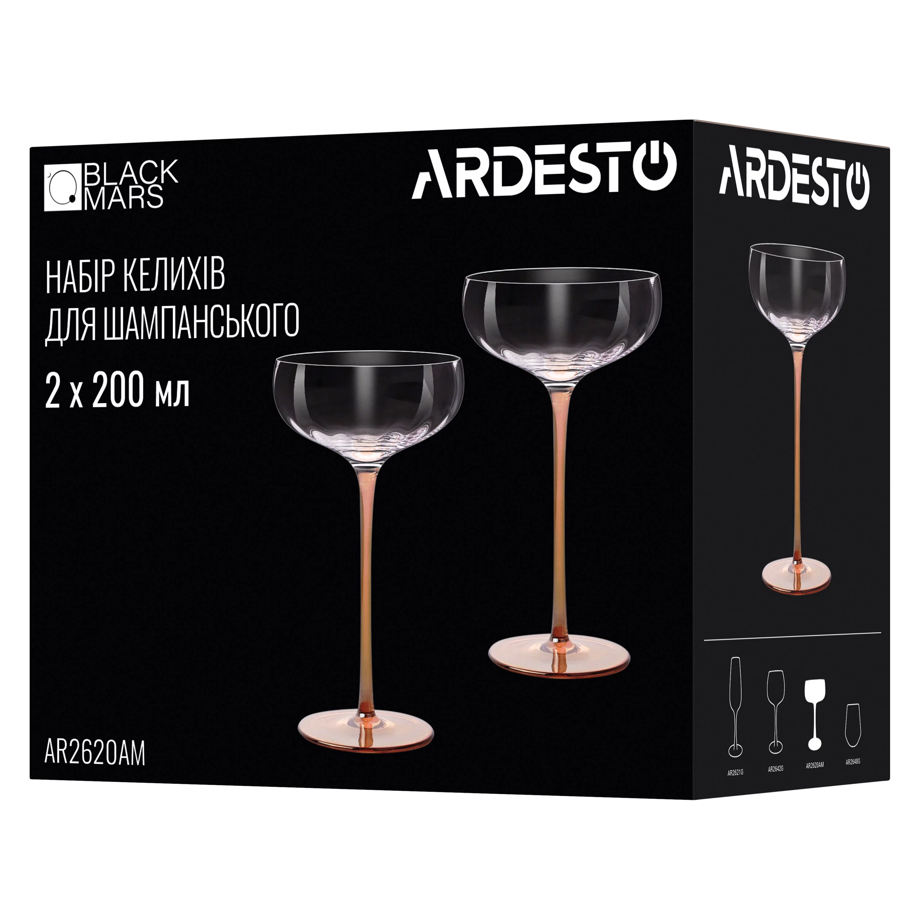 Келихи для шампанського ARDESTO серії Black Mars Amber розкриють смак і аромат напою, який у ньому подають. Завдяки прозоро-золотистому склу, з якого виготовлено виріб, буде вдало підкреслено його вміст. Матеріал виготовлення безпечний і міцний, проте не передбачає миття у посудомийній машині. Об’єму 200 мл достатньо для насолоди улюбленим напоєм. Набір із двох келихів у кольоровому опакованні буде подарунком, який викликатиме позитивні емоції.