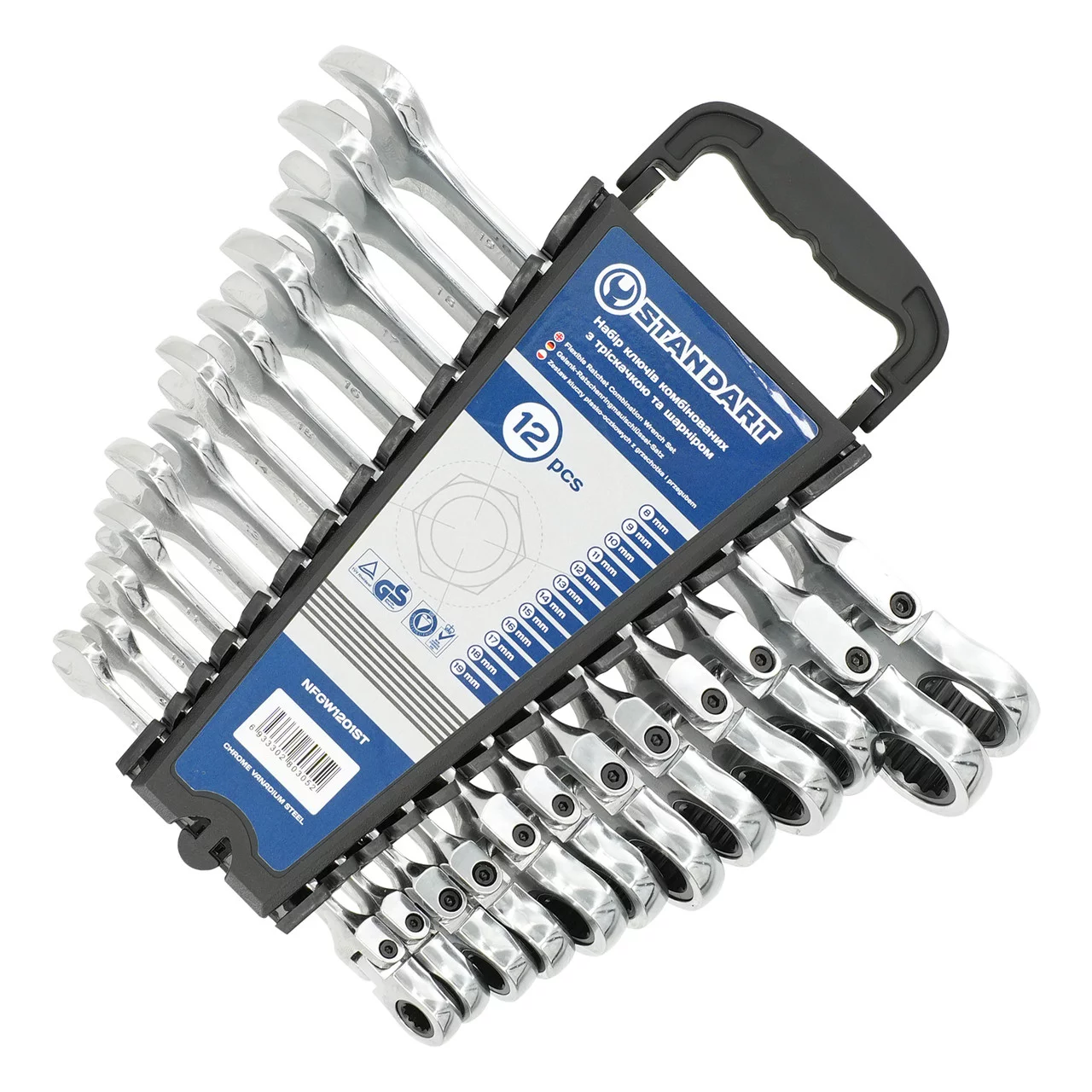 Набір комбінованих ключів з тріскачкою та шарніром СТАНДАРТ NFGW1201ST стане незамінним помічником у гаражі, автомайстерні чи сервісному центрі, де потрібна якість, швидкість і точність виконання роботи.