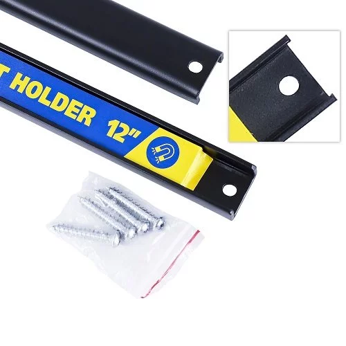 Магнітні планки мають по 2 отвори для кріплення на стіну. З їх допомогою можна компактно розмістити великий набір металевих предметів, наприклад, гайкових ключів в гаражі або ножів на кухні.