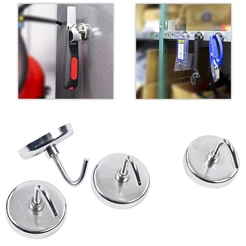 Кожен магнітний гачок здатний утримувати предмети вагою до 3,5 кг. Габаритні розміри виробу невеликі: діаметр магнітної підставки всього 35 мм, що дозволяє розмістити гачок навіть на невеликій за площею металевій поверхні.