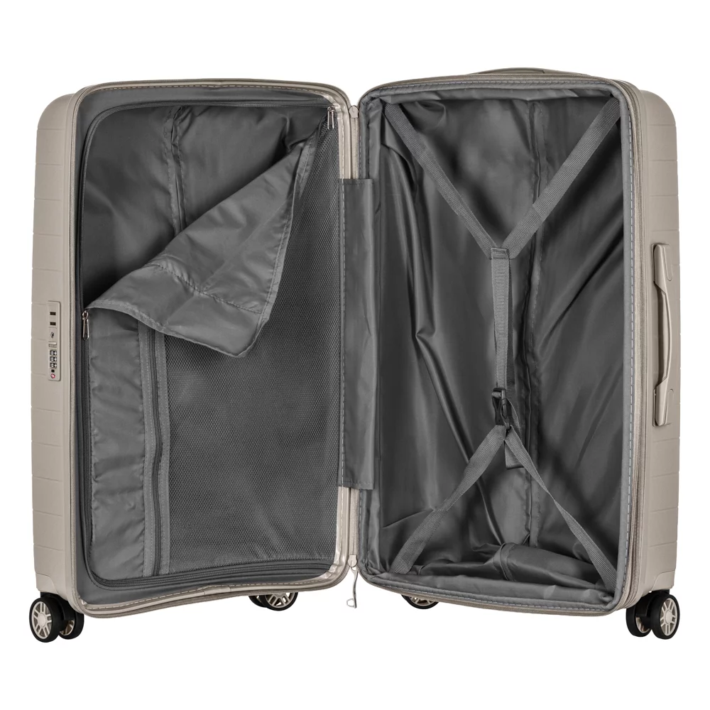 можливість розширення (збільшення об`єму), передбачено розділювачі та регульовані пакувальні паски всередині, подвійні колеса