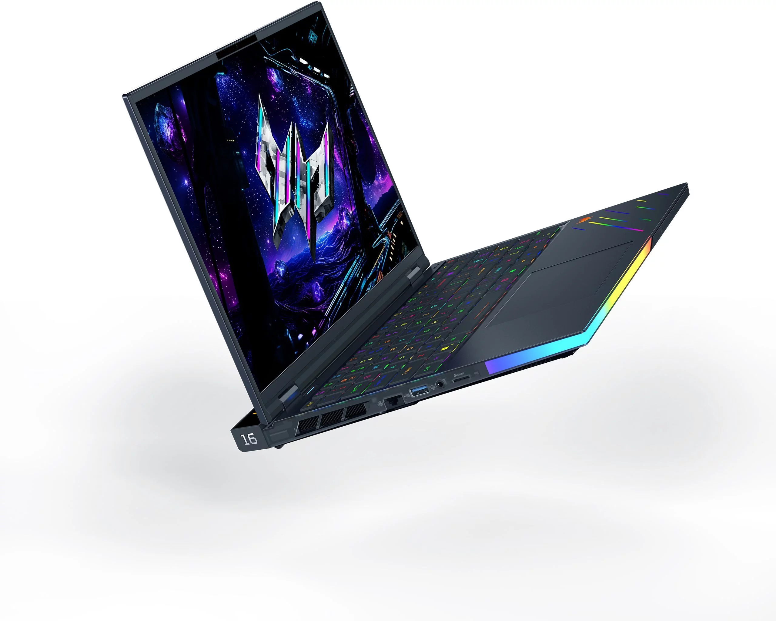 Ноутбук із процесором Intel® Core™ Ultra 9 275HX, відеокартою NVIDIA® RTX 5070Ti з 12 ГБ пам’яті та 64 ГБ оперативної пам’яті DDR5. Оснащений швидким накопичувачем 2 ТБ (2x1024 ГБ NVMe), 16-дюймовим OLED-дисплеєм WQXGA з частотою 240 Гц, сучасними інтерфейсами (WiFi 7, Thunderbolt 5, HDMI 2.1) і батареєю 90Wh.