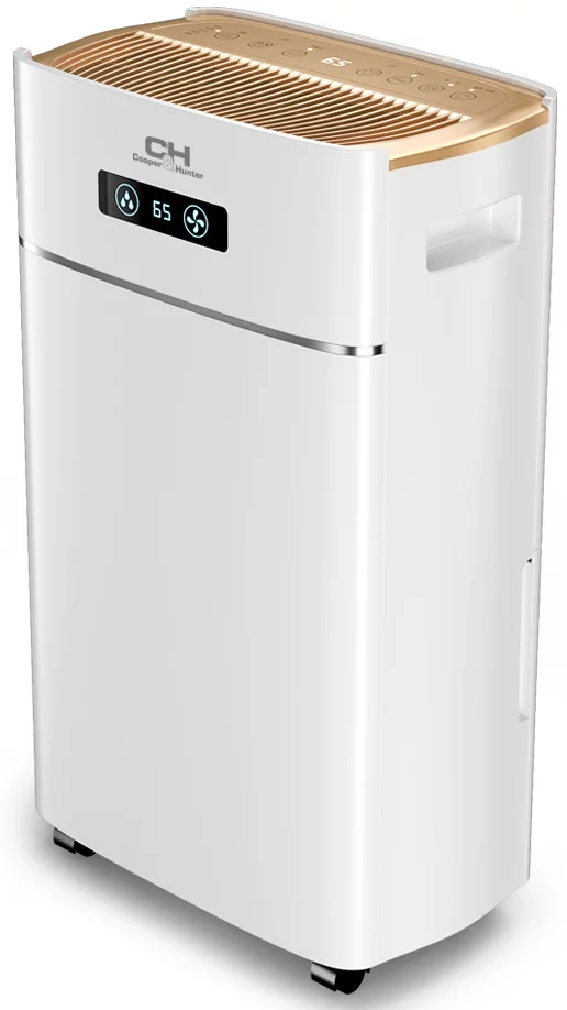 Осушувач повітря Cooper&Hunter CH-D014WD8-30LDWF розрахований на площу до 100 м² та продуктивність 30 л на добу. Прилад оснащений електронним керуванням, LED-дисплеєм, Wi-Fi та таймером на 24 години. Є функція іонізації, режими для різних потреб і резервуар на 5 л з автоматичним вимкненням при наповненні. Завдяки коліщаткам легко переміщується між кімнатами.