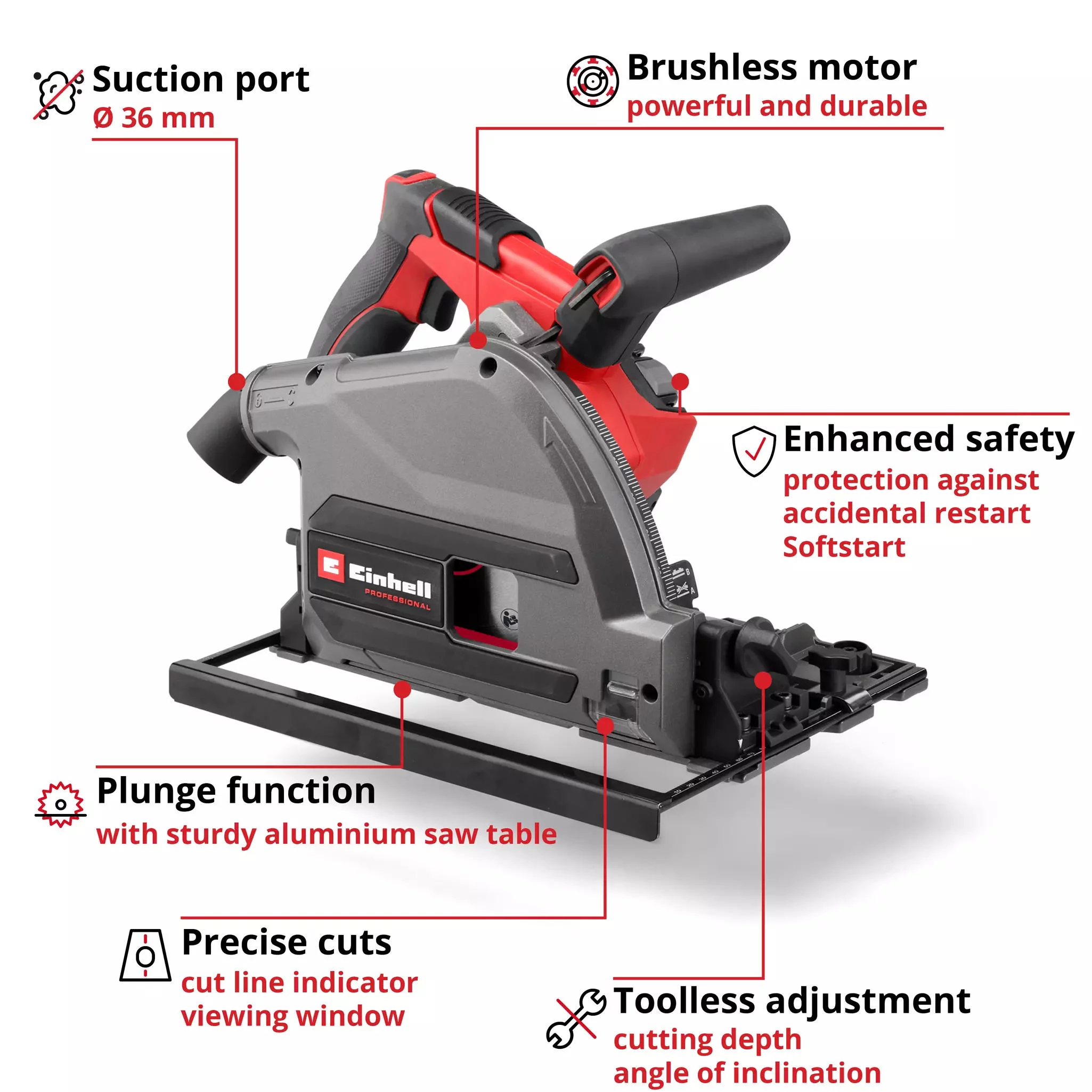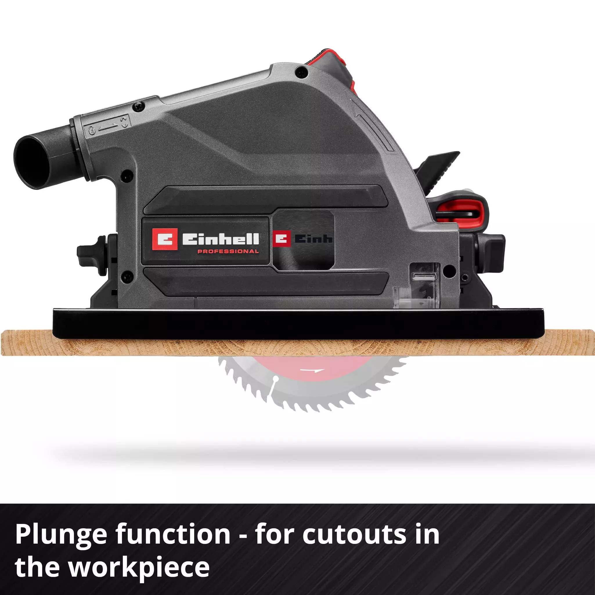 Пила Einhell TP-PS 18/165 Li BL - Solo чудово справляється з деревом та пластиком. Функція розрізу дозволяє занурюватися безпосередньо зверху на заготовку. Твердосплавний диск діаметром 165 мм із кількістю зубів 56 шт забезпечує глибину різу до 56 мм під кутом 90° та 42 мм під кутом 45°. Чистота зрізів гарантована, навіть коли область використання знаходиться близько до краю.