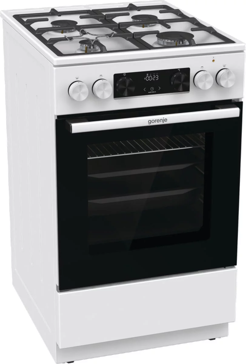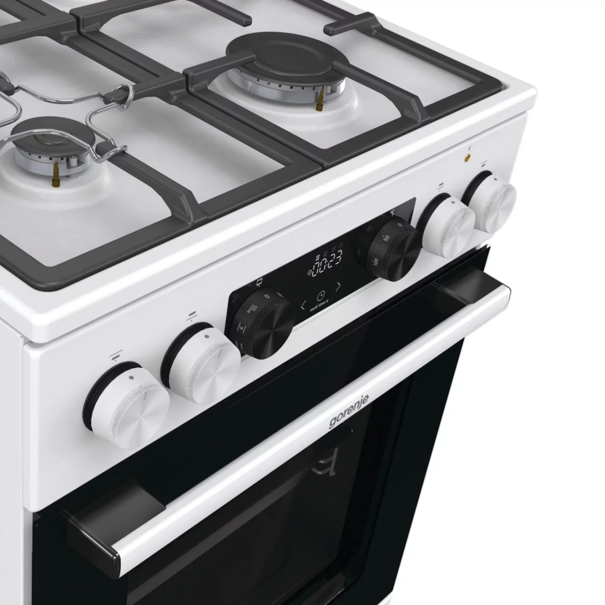 Плита комбінована Gorenje GK5C43WF – це стильне та функціональне рішення для вашої кухні. Завдяки поєднанню газової варильної поверхні та електричної духовки, цей прилад забезпечує максимальну зручність у використанні. Варильна поверхня обладнана чотирма конфорками, включаючи додаткову та велику конфорку, що дозволяє ефективно готувати страви різних типів.