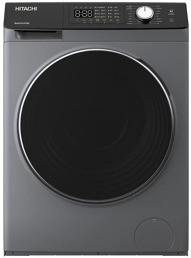 Прально-сушильна машина Hitachi BD-D802HVOS поєднує ефективність прання, сушіння та сучасний дизайн. Завдяки завантаженню 8 кг для прання та 5 кг для сушіння вона забезпечує повний догляд за білизною в одному циклі. Інверторний двигун працює тихо й енергоощадно, а парова обробка та гігієнічна програма видаляють бактерії та зберігають свіжість речей. Темно-сріблястий корпус і чорний люк гармонійно доповнюють сучасний інтер’єр.