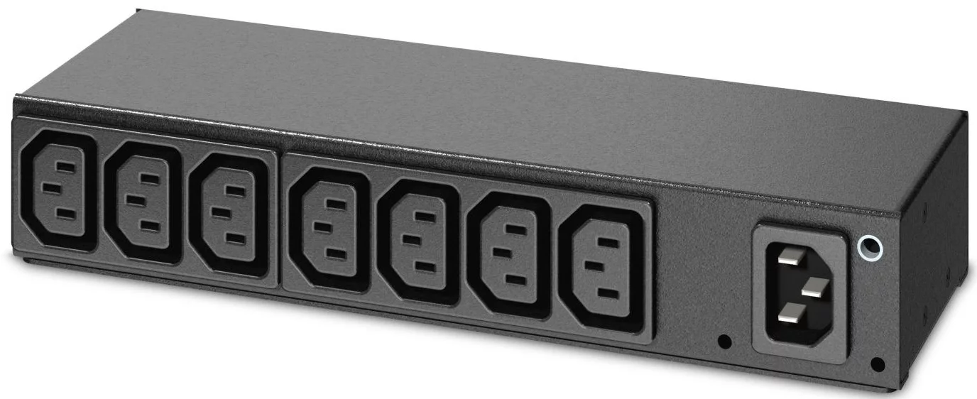 Це базовий стійковий БРЖ з горизонтальним монтажем висотою 1U. Він підтримує максимальний вхідний струм 15А і працює при напрузі 100-240В. БРЖ має 8 розеток IEC 60320 C13, що забезпечує достатню кількість підключень для ІТ-обладнання. Він оснащений штекером IEC 60320 C14. Пристрій призначений для надійного розподілу електроенергії і включає в себе інструкцію з монтажу та інструкцію з техніки безпеки.