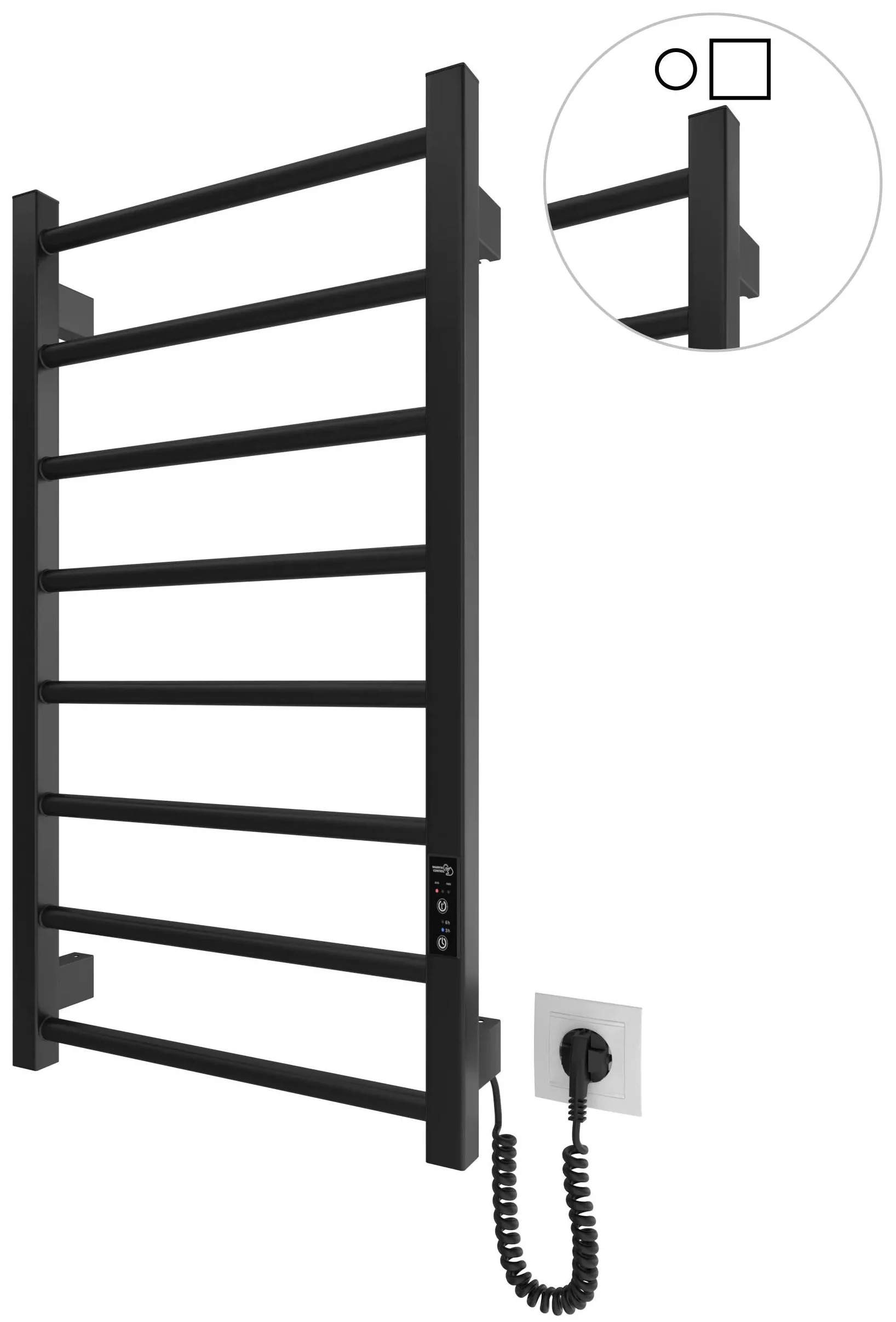 Електрична рушникосушарка HF Leeds 770×430. Працює за технологією сухого ТЕНу. Обладнана вбудованим таймер-регулятором і конектором для підключення до живлення з будь-якого боку. Оснащена комплектом для прихованого підключення.
