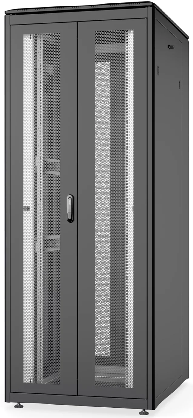 Мережева шафа DIGITUS 19" 42U забезпечує надійне зберігання та монтаж обладнання до 800 кг. Подвійні перфоровані сталеві двері з кутом відкриття 120° гарантують оптимальну вентиляцію та легкий доступ. Бічні панелі замикаються і знімаються для зручності обслуговування. Профільні рейки 19" регулюються по глибині, а вбудовані опорні стрижні підвищують стабільність. Ідеальна для серверних кімнат, дата-центрів та офісного мережевого обладнання.