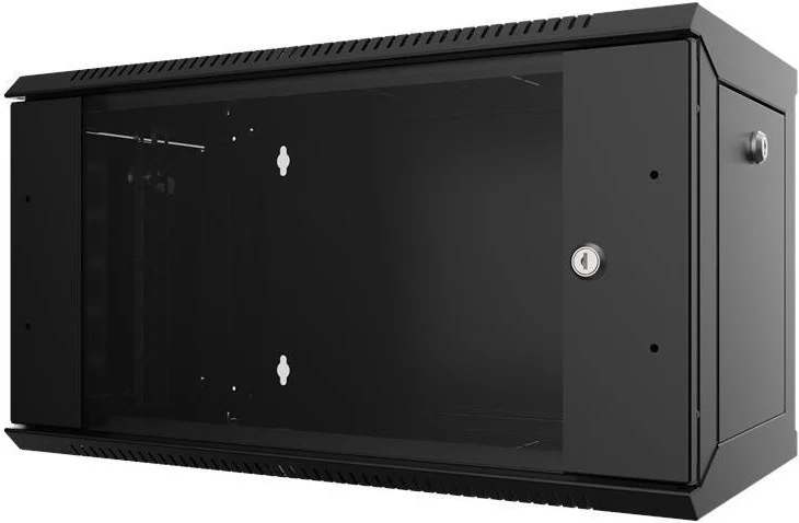 Mirsan 12U 19" — телекомунікаційна шафа з перфорацією під вентилятор, скляними дверима з замком, знімними боковинами та кабельними вводами. Витримує до 80 кг. Оптимальна для офісних і серверних рішень.