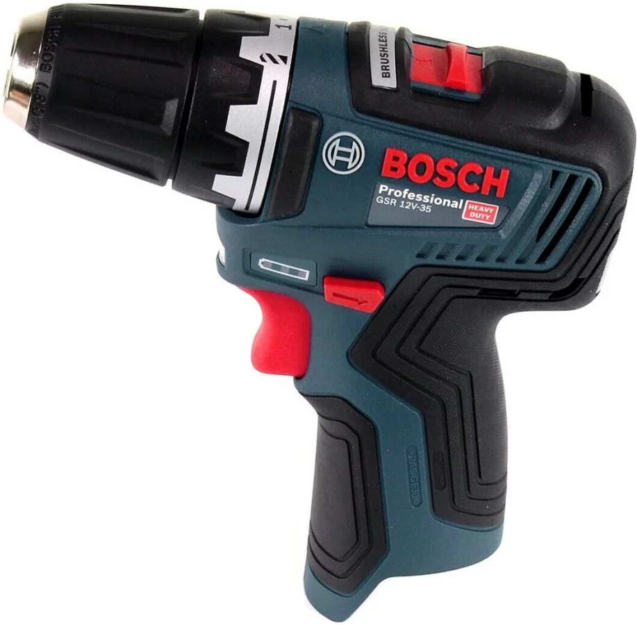 Шурупокрут-дриль Bosch Professional GSR 12V-35 на 12 В з безщітковим двигуном забезпечує крутний момент до 35 Нм для свердління та закручування. Дві швидкості від 0 до 1750 об/хв дозволяють адаптувати інструмент до завдань. Вага 0,75 кг полегшує роботу в обмеженому просторі без акумулятора та зарядного пристрою. Компактна довжина 175 мм сприяє маневреності. Цей пристрій оптимізує монтаж та ремонтні операції.