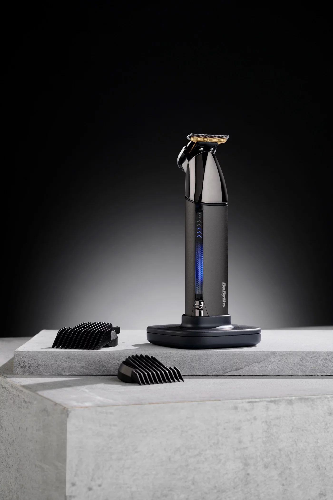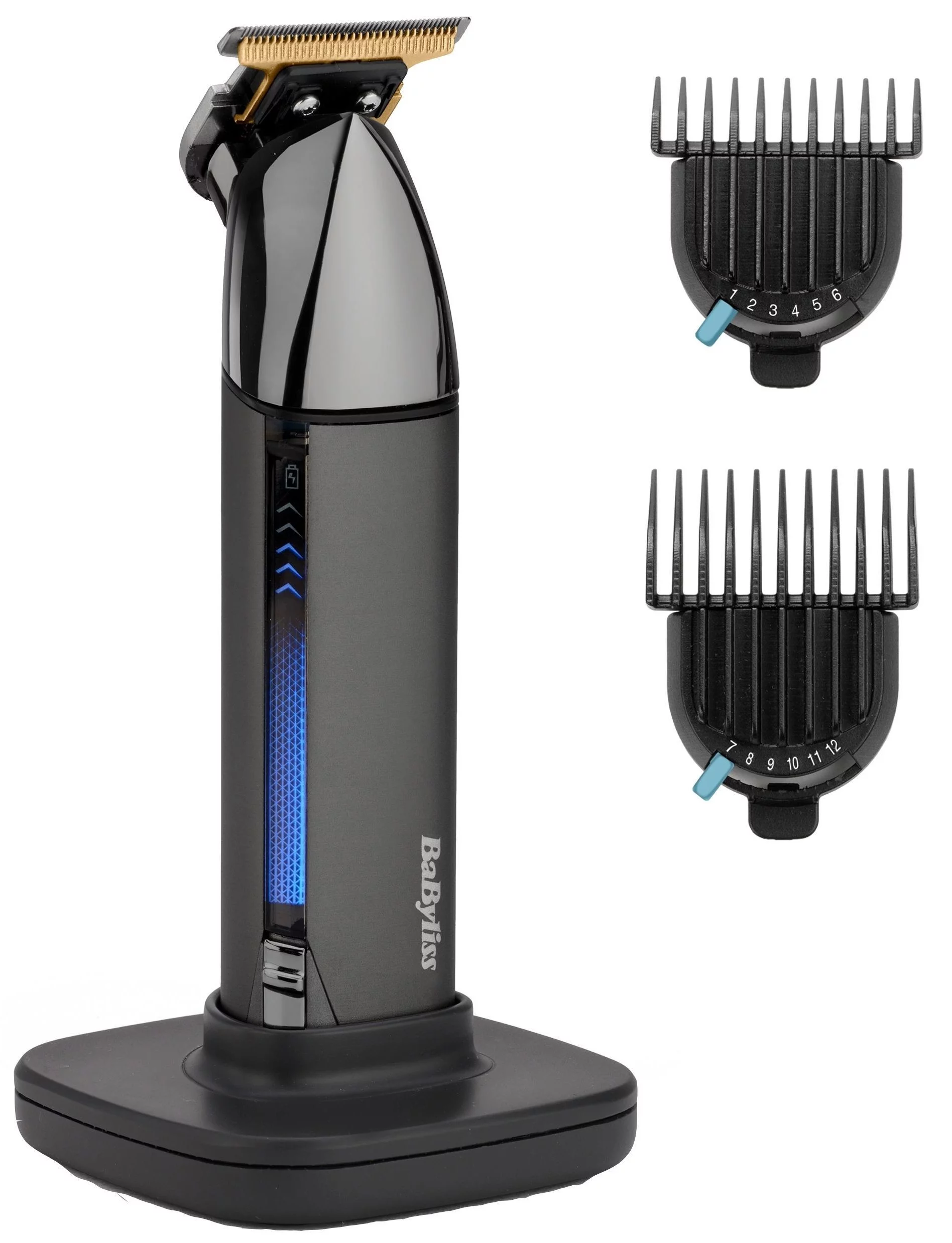 Тример Babyliss Super-X Metal Black Edition підходить для догляду за бородою та вусами, оснащений високоточними лезами з японської сталі. Працює від Li-Ion акумулятора до 300 хвилин, має 2 насадки (1–6 мм та 7–12 мм), зарядну підставку з USB та сумку для зберігання.