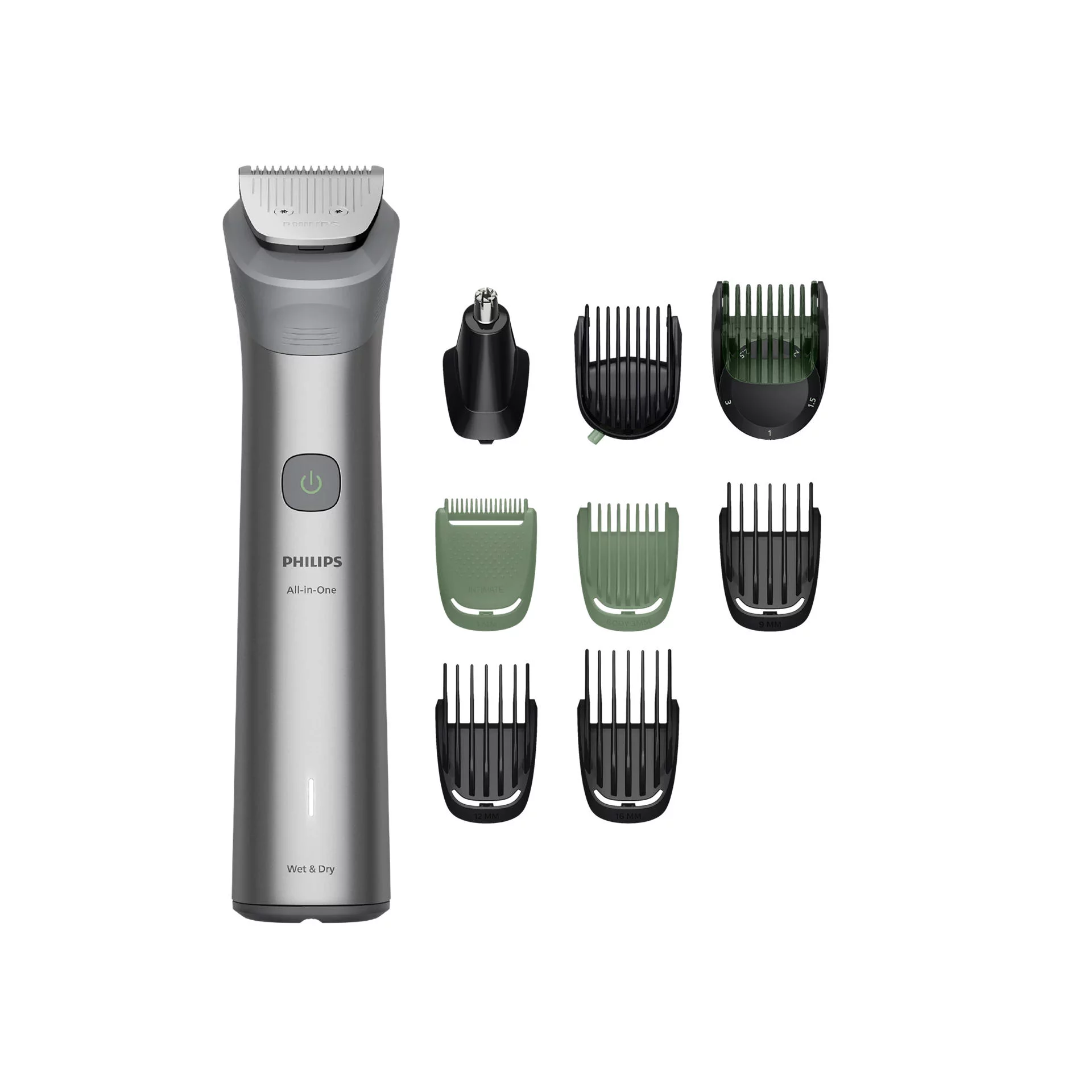 Наш універсальний тример має 10 якісних інструментів, розроблених для обличчя, голови й тіла, зокрема леза, які самі заточуються й залишаються такими ж гострими, як першого дня, які не потрібно змащувати для тривалої ефективної роботи.