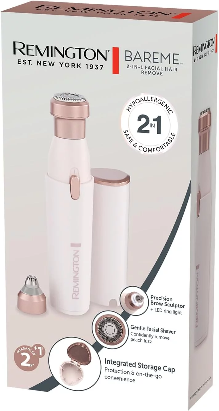 Remington WFS200 формує точні контури брів та видаляє волосся з носа й вух завдяки двом насадкам з нержавіючою сталлю. Вбудоване LED-підсвічування забезпечує контроль у зонах з обмеженим доступом, роторний мотор потужністю 5 Вт працює автономно до 80 хвилин після заряджання 90 хвилин через USB-C. Повна водонепроникність дозволяє очищувати під струменем води, індикатор сигналізує про рівень заряду.