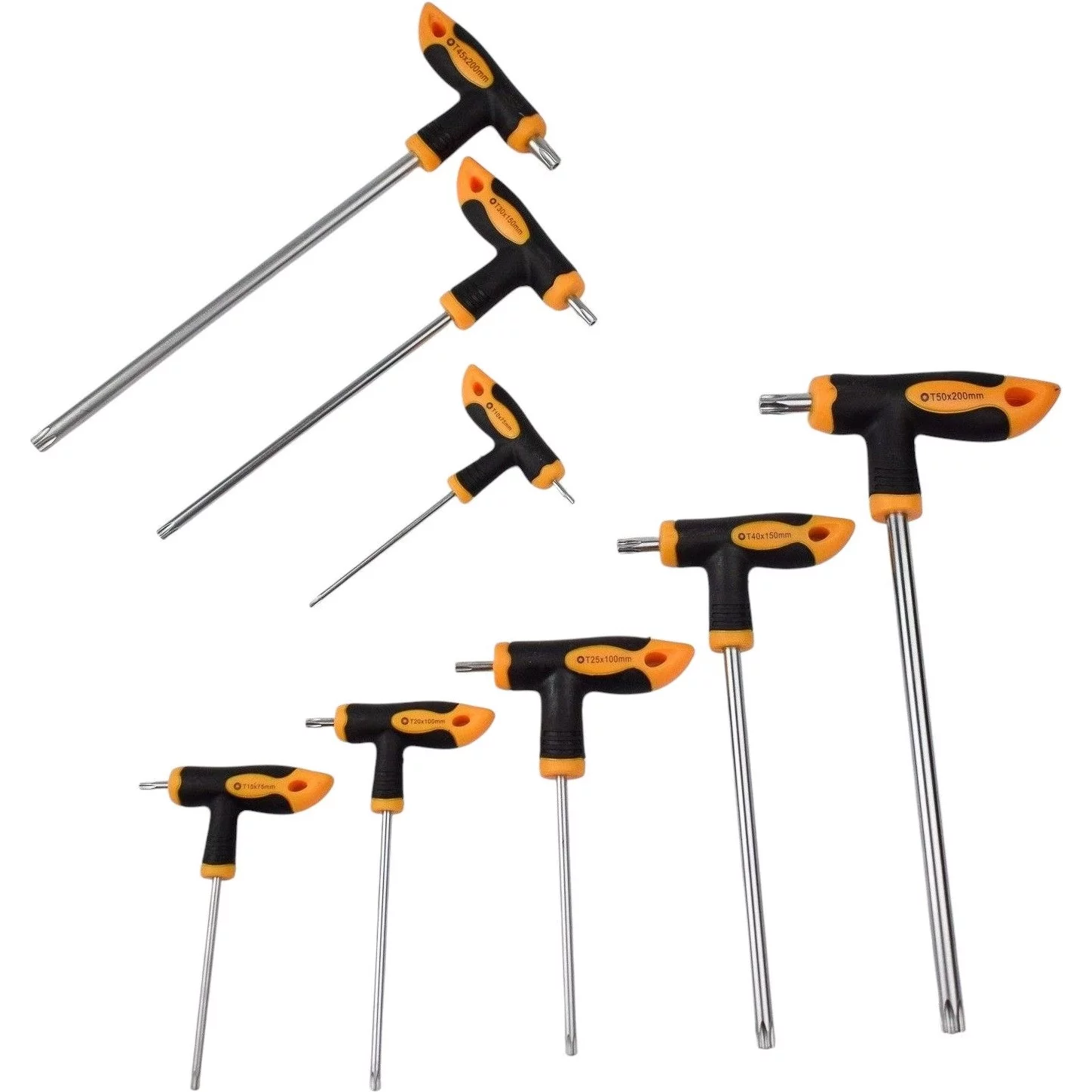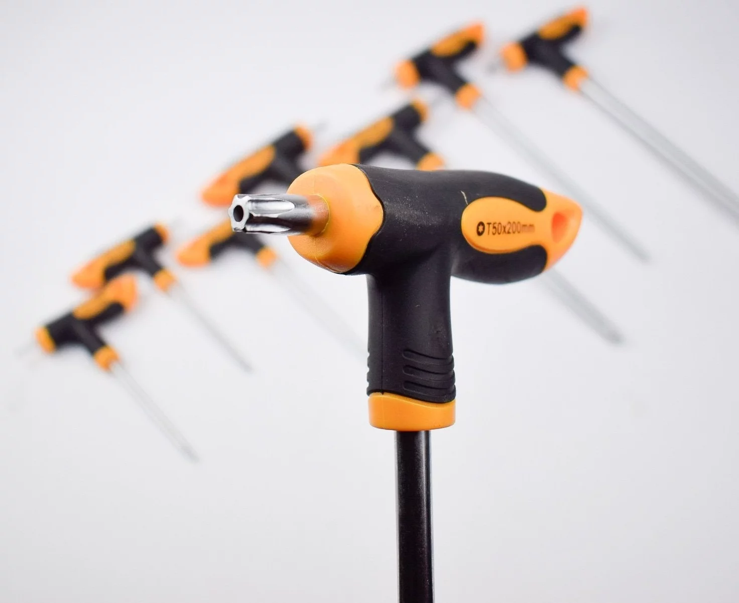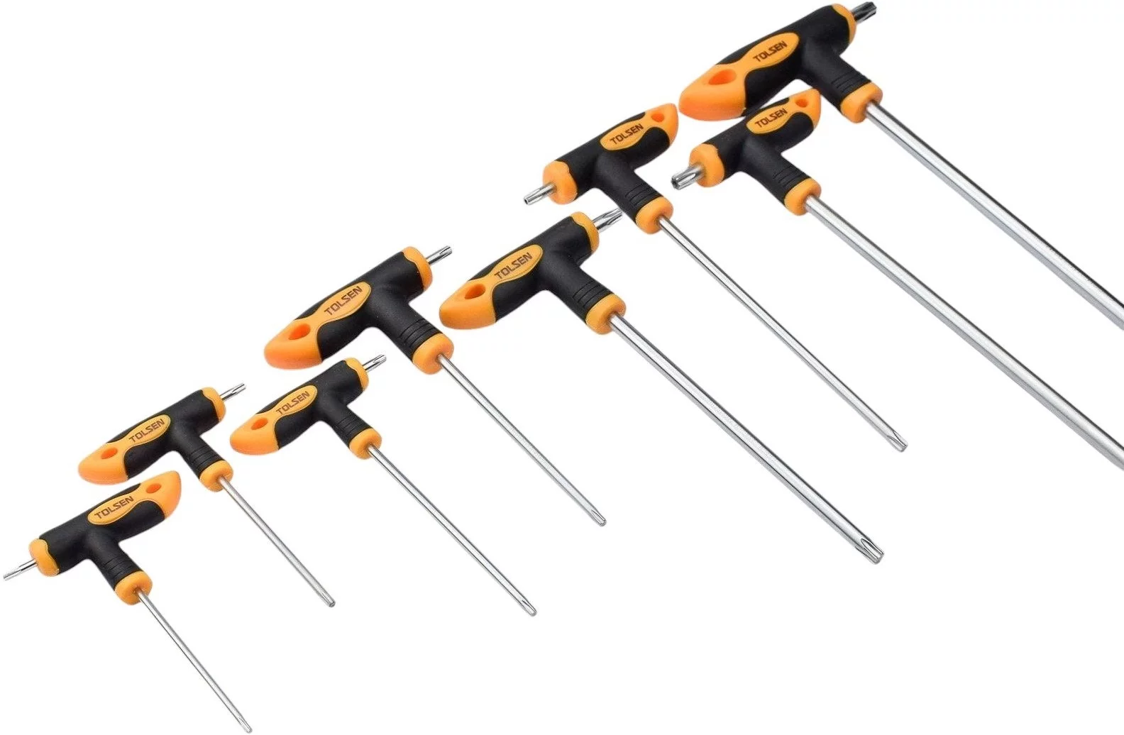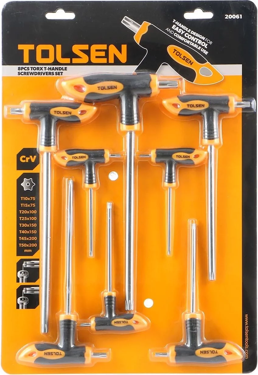 Tolsen 20061 — це практичний набір із 8 Torx викруток T-подібної форми розміром від T10 до T50. Леза виготовлені зі сталі CrV, що гарантує міцність і довговічність навіть при інтенсивному використанні. T-подібна ручка забезпечує зручний хват і кращий крутний момент для роботи з щільно затягнутими гвинтами. Ідеально підходить для автомайстерень, сервісів та домашніх робіт. Tolsen — інструмент, який не підведе.