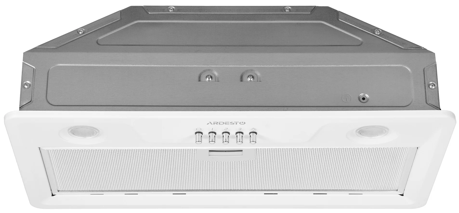 Вбудовувану витяжку ARDESTO призначено для повної інтеграції в кухонний гарнітур. Вимкненою, вона залишається абсолютно непомітною, а під час експлуатації забезпечує ефективне очищення повітря. Металевий корпус доповнено білим оздобленням на видимій частині, що зумовлює акуратний та універсальний дизайн моделі.