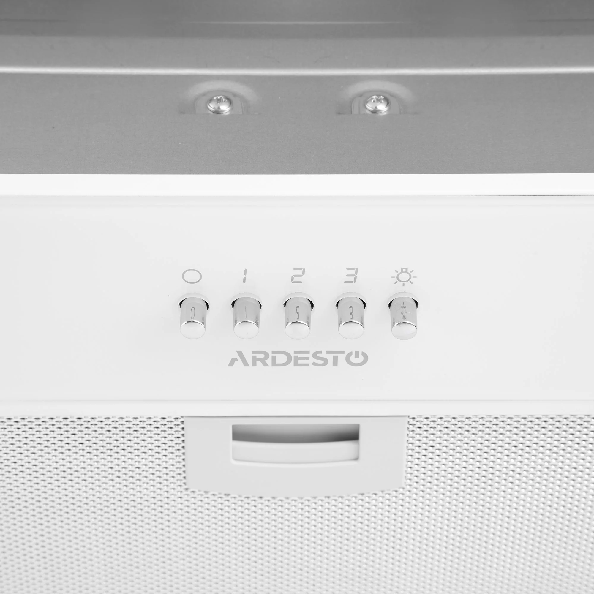 Вбудовувану витяжку ARDESTO призначено для повної інтеграції в кухонний гарнітур. Вимкненою, вона залишається повністю непомітною, а під час експлуатації забезпечує ефективне очищення повітря. Металевий корпус доповнено білою фронтальною скляною поверхнею, що зумовлює акуратний та універсальний дизайн моделі.