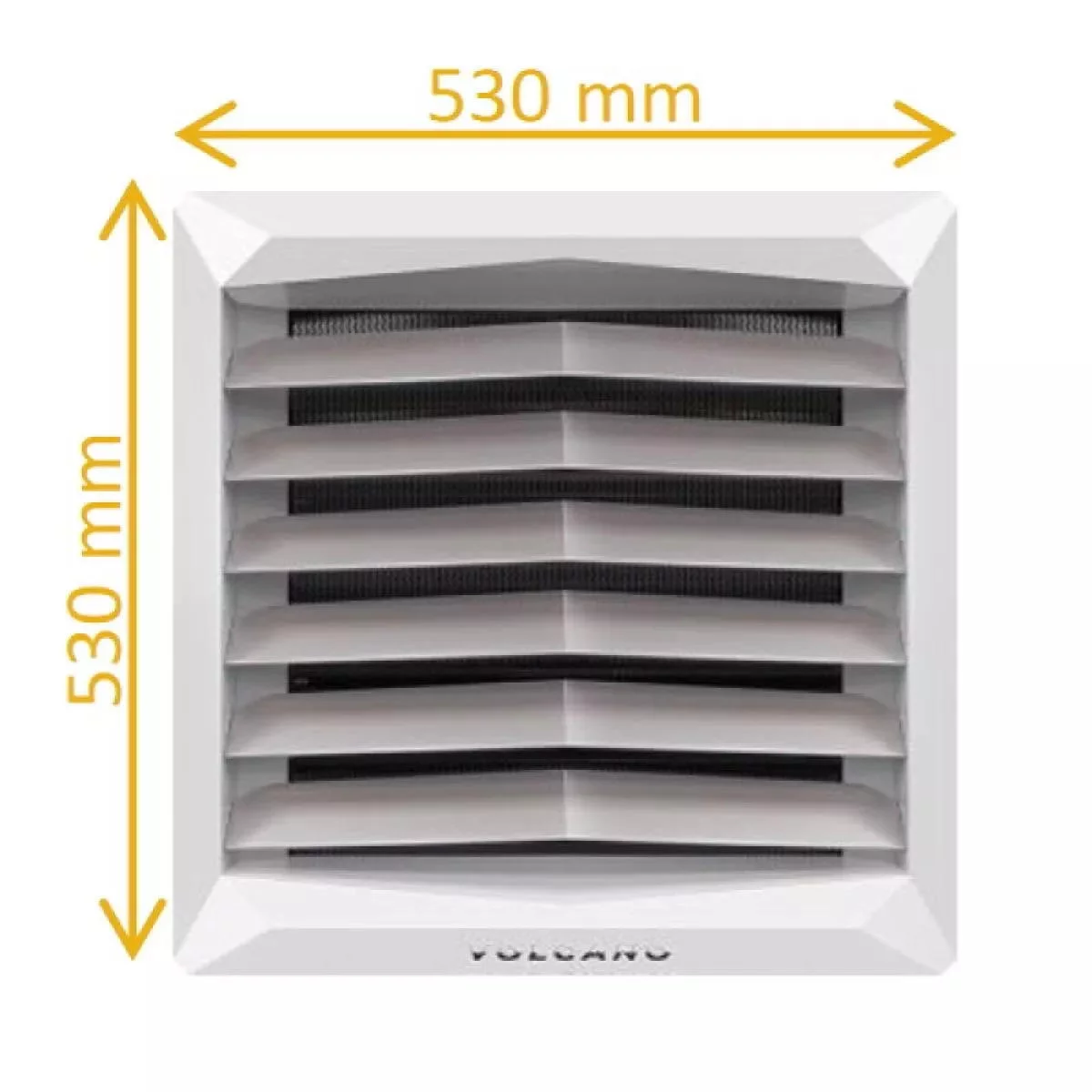 VTS VOLCANO VR MINI 3 AC – водяний тепловентилятор потужністю 27 кВт для опалення та охолодження з продуктивністю 2000 м³/год, що використовує гарячу воду до 130°C. Розподіл повітря в чотирьох напрямках досягає 14 м горизонтально та 8 м вертикально, без потреби в зовнішньому повітрі для ефективного нагрівання. Автоматичний термодатчик підтримує задану температуру, знижуючи витрати на роботу.
