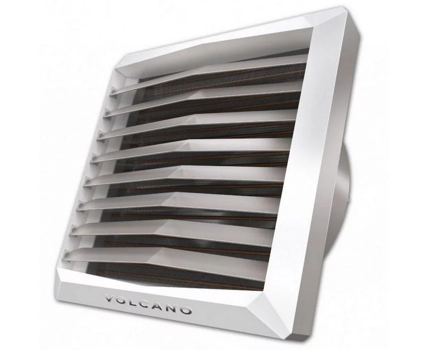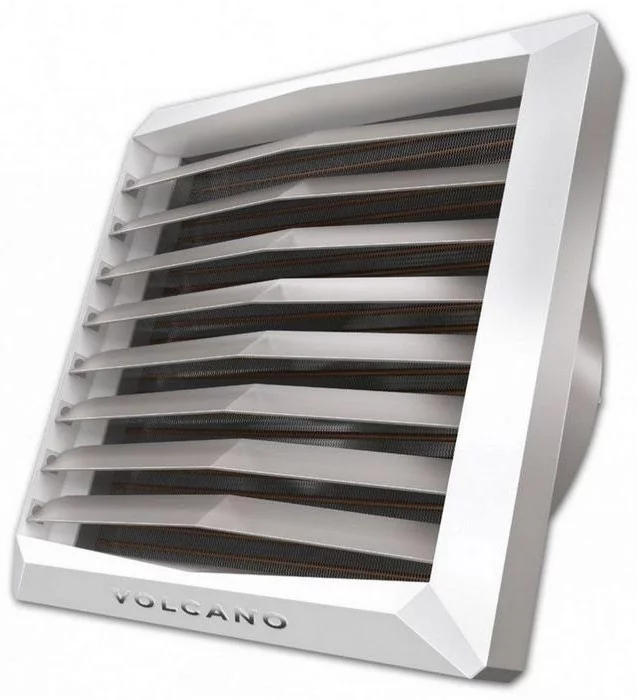 Volcano VR Mini AC від EuroHeat – водяний тепловентилятор потужністю 20 кВт для ефективного опалення та охолодження приміщень з використанням гарячої води 90°C. Вентилятор розподіляє тепле повітря в чотирьох напрямках на відстань до 14 м горизонтально та 8 м вертикально, не потребуючи вуличного повітря.
