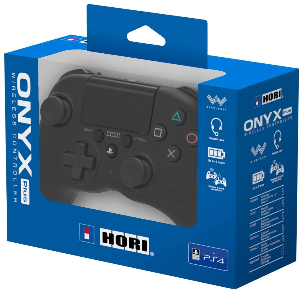 Бездротовий контролер ONYX Plus від відомого японського бренду Hori розроблений спеціально для PS4. Замініть свій звичайний Dualshock на цей геймпад, що володіє більш широкою ергономікою. Розроблений з нуля, для задоволення потреб сучасного геймера, геймпад ідеально лежить в руках, а аналогова компоновка зі зміщенням нагадує більш сучасні консольні геймпади.