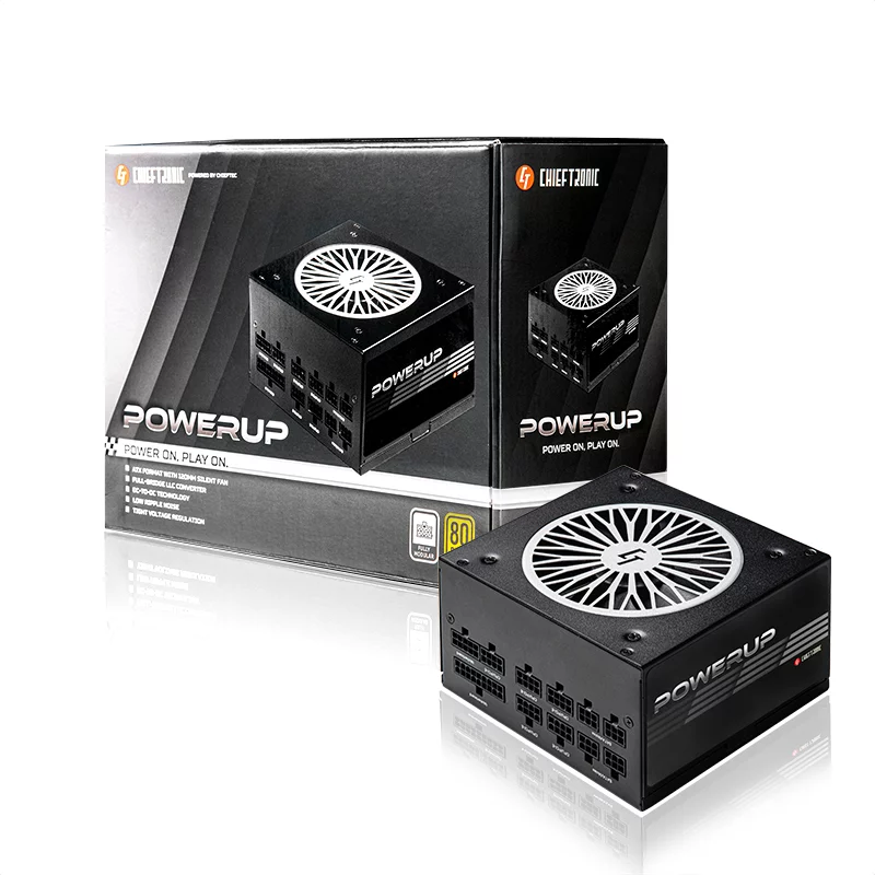 Завдяки дизайну, що гарантує високу щільність потужності, ця серія гарантує потужність аж до 850W незважаючи на невеликий форм-фактор, загальною довжиною всього 14 см, і ККД 80PLUS® Gold. Компактний розмір і повністю модульне управління кабелями дозволить Вам використовувати серію PowerUp як для невеликих систем, де є потреба у маленький блок живлення, так і для дуже великих систем завдяки довгим чорним плоским кабелях.