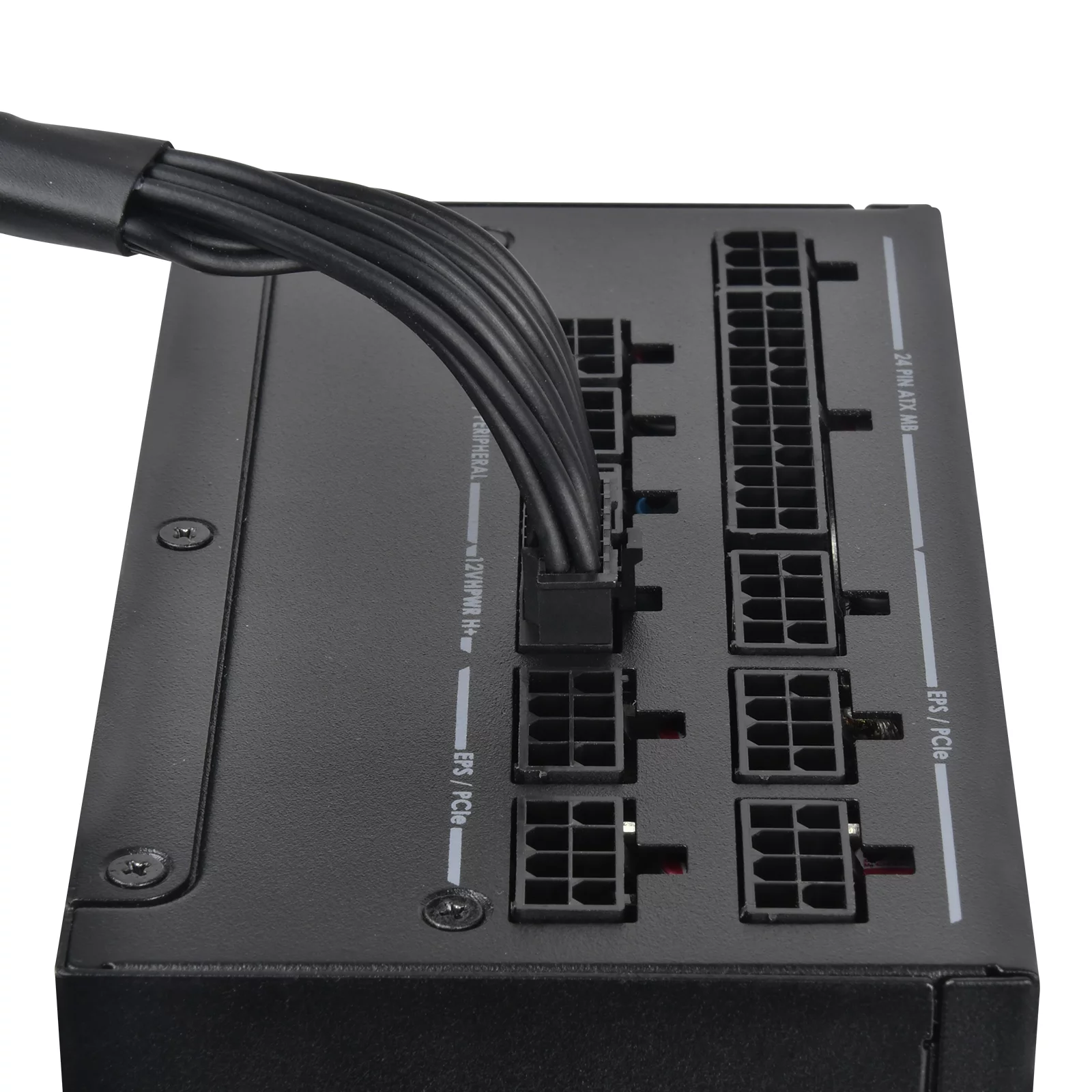 1 x 12+4-Pin 12VHPWR (550мм), 1 x 24 / 20-Pin (600мм), 1 x 4-Pin Floppy (100мм), 2 x 8 / 4-Pin EPS / ATX 12V (750мм), 3 x 4-Pin Peripheral (600мм+150мм+150мм), 6 x 8 / 6-Pin PCIe (550мм +150мм), 12 x SATA (600мм+150мм+150мм+150мм)