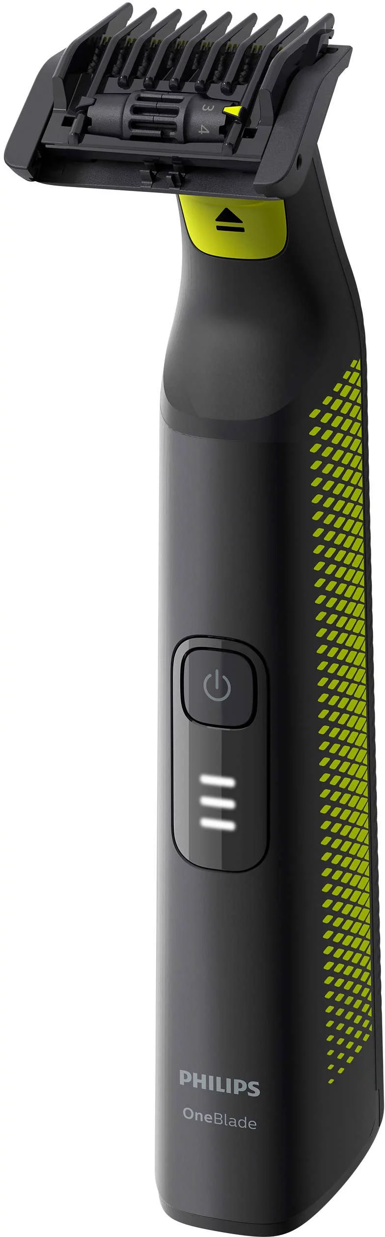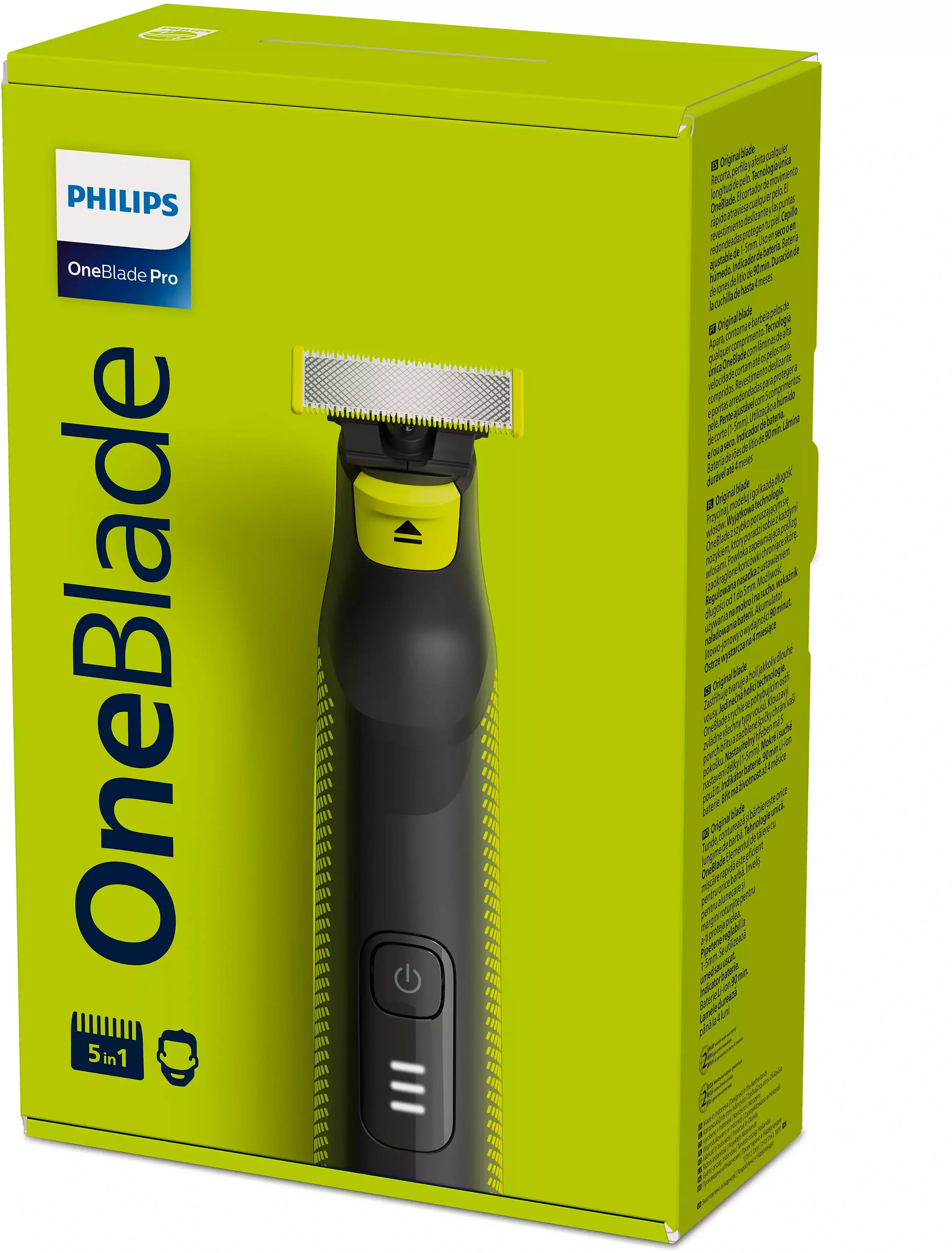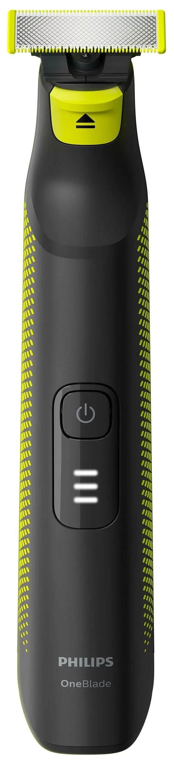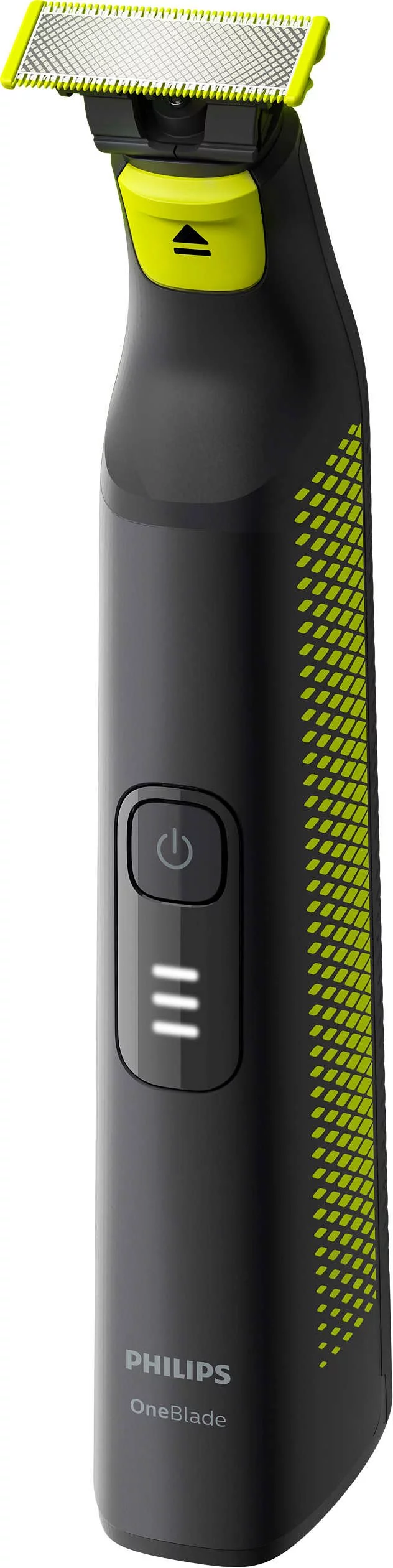 Голить волосся, а не шкіру. Philips OneBlade Pro – це революційний гібридний електростанок, що дозволяє підстригати, голити волосся та створювати чіткі лінії та краї на волоссі будь-якої довжини. Забудьте про поетапну стрижку та використання різних інструментів. OneBlade – це універсальне рішення. Унікальна технологія OneBlade. Швидкий ріжучий блок робить 12 000 рухів на хвилину, тому він ефективний навіть для довгого волосся. Ковзаюче покриття і заокруглені кінці захищають вашу шкіру від порізів та подразнень, роблячи гоління ще більш комфортним.