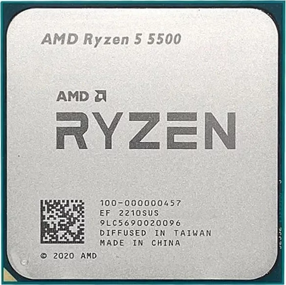 AMD Ryzen 5 5500 — це 6-ядерний процесор із 12 потоками, базовою частотою 3.6 ГГц та розгоном до 4.2 ГГц. Створений за 7-нм техпроцесом, підтримує оперативну пам’ять DDR4 до 3200 МГц (2 канали, обсяг до 128 ГБ) та має кеш L3 на 16 МБ. TDP 65 Вт, підтримка PCIe 3.0 і технології AMD Precision Boost 2 забезпечують високу продуктивність для роботи та ігор.