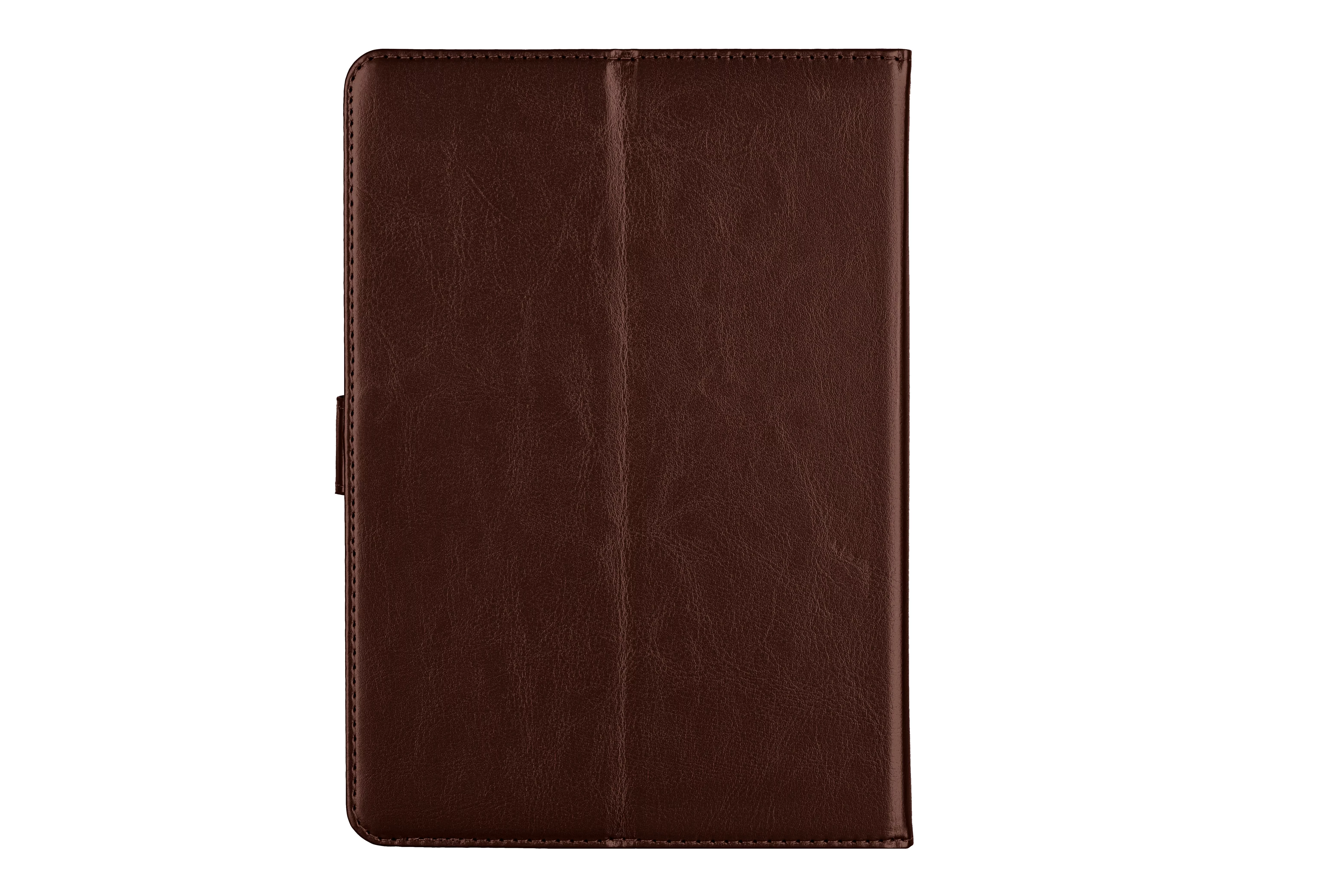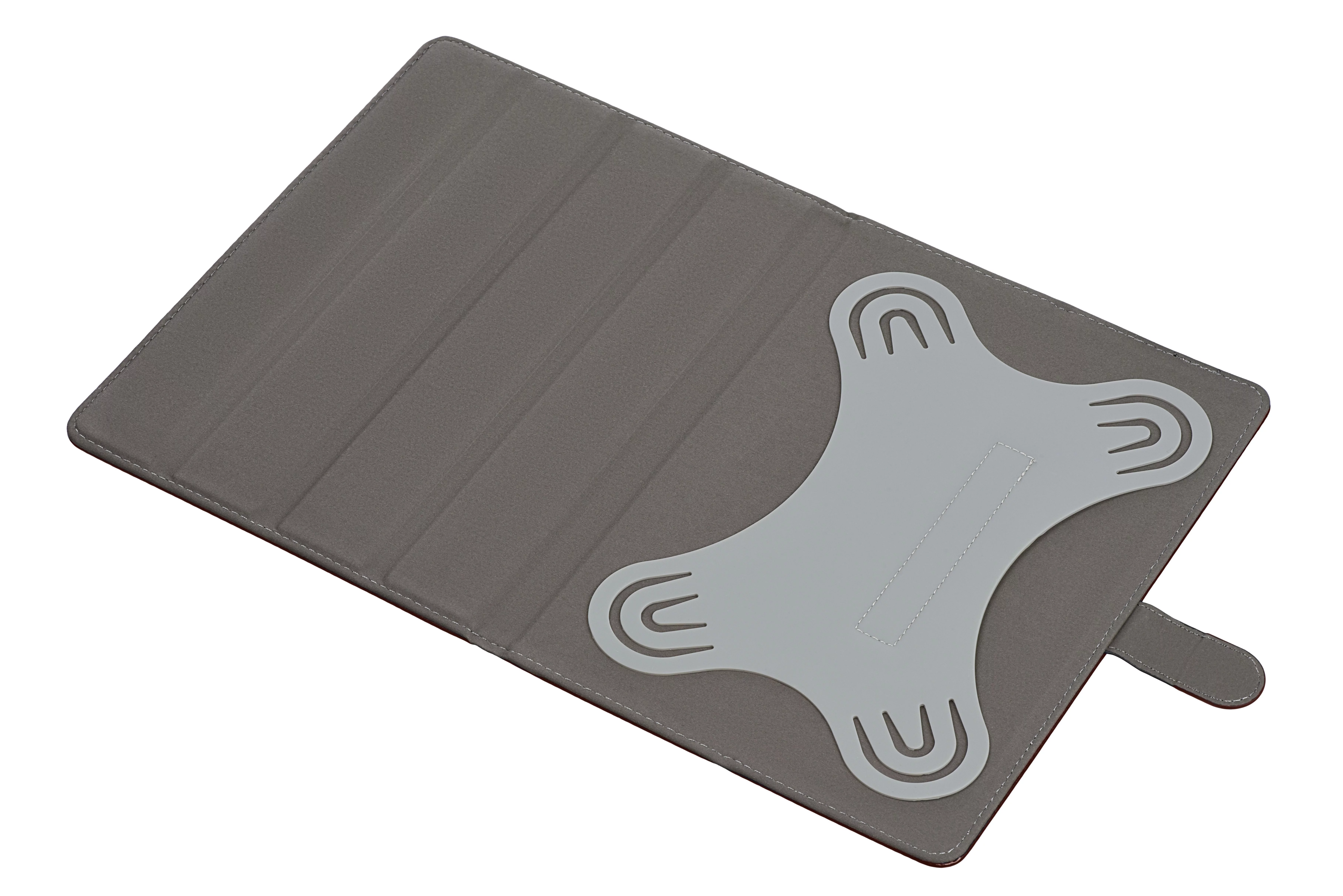 Універсальна обкладинка для планшетів та електронних книг. Зовнішня частина виконана з якісної PU шкіри, всередині м’яка підкладка з мікрофібри. У закритому положенні чохол фіксується на магнітну застібку. Для встановлення планшету передбачено спеціальне силіконове кріплення. Чохол має положення для роботи, читання і перегляду відео.