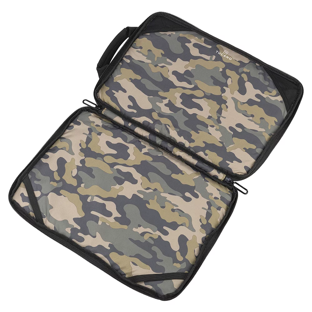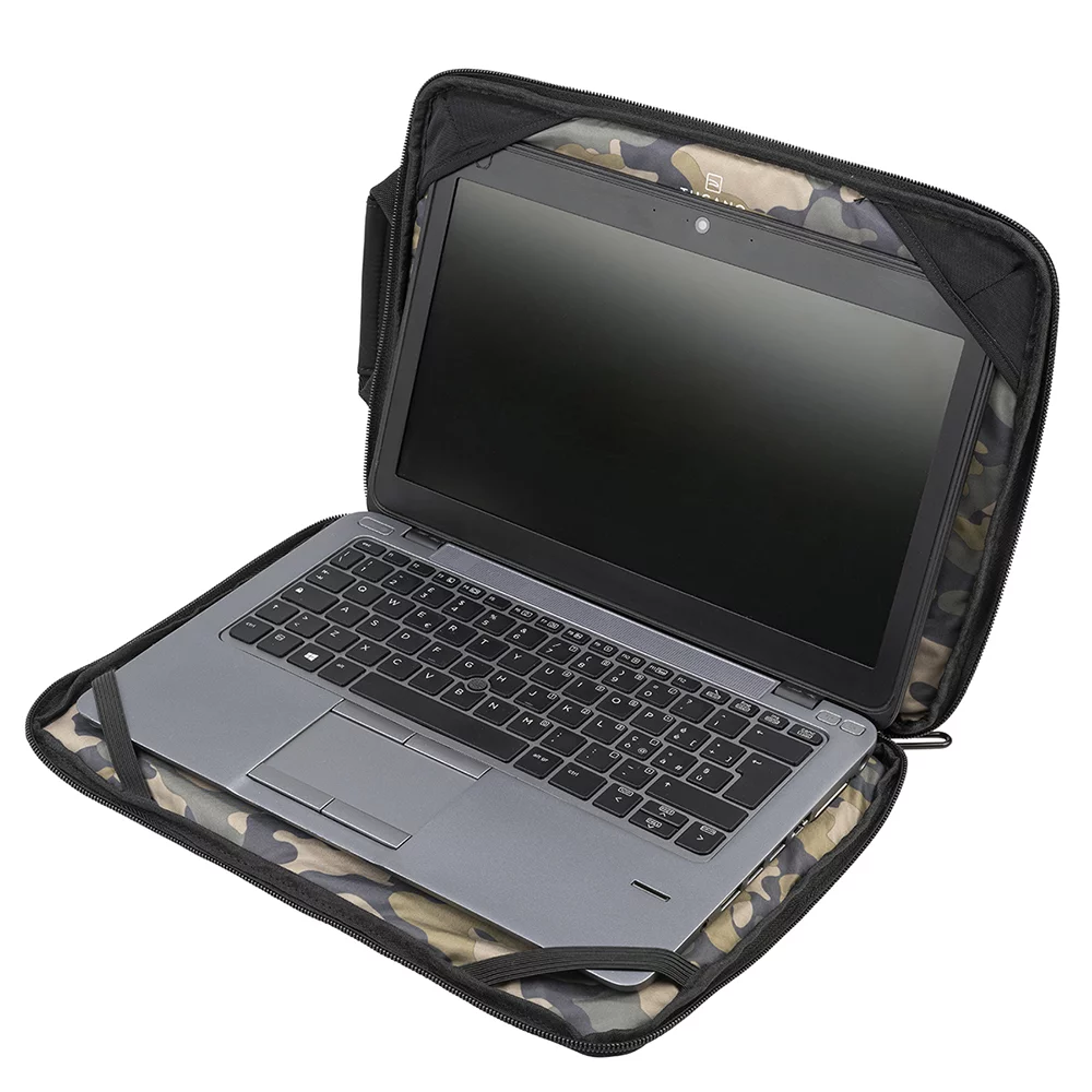 Елегантний чохол для ноутбуків 13-14 дюймів або MacBook Pro 14 дюймів. Блискавка проходить із трьох сторін, дозволяючи повністю розстебнути чохол. Чохол можна використовувати як робочу поверхню, закріпивши кути пристрою двома резинками. Зручна зовнішня кишеня для аксесуарів та бічна ручка роблять виріб дуже функціональним.