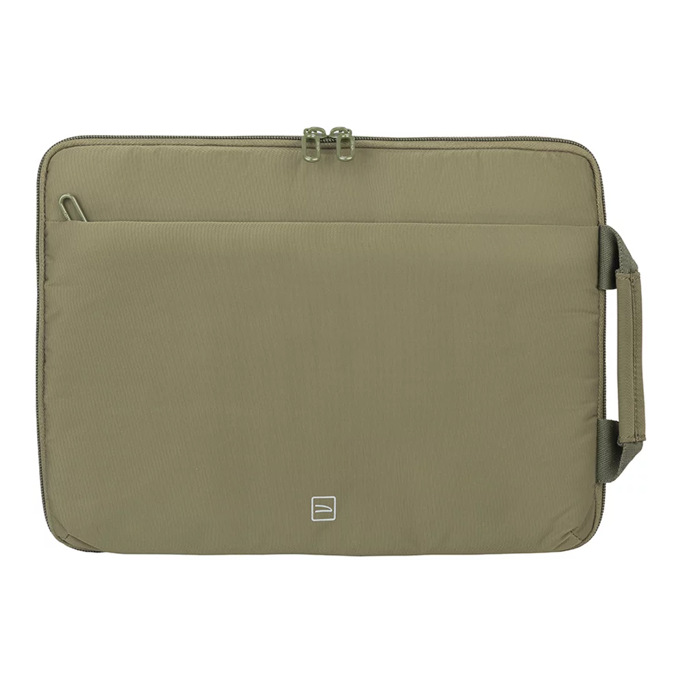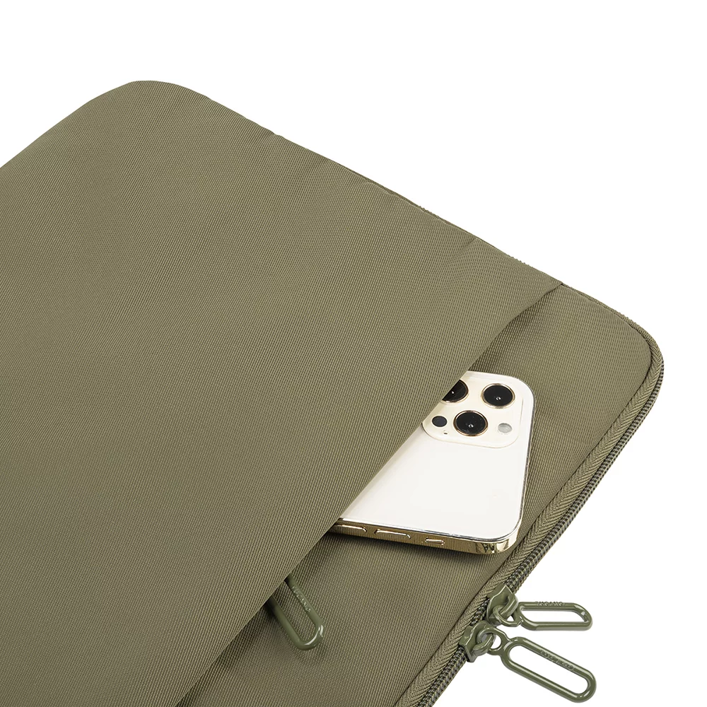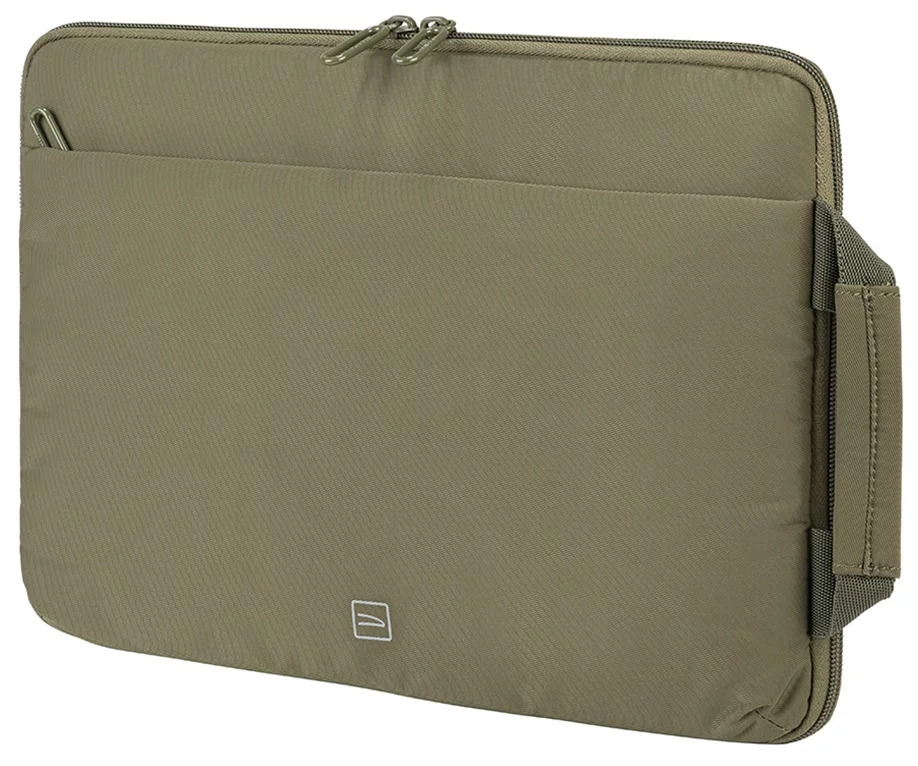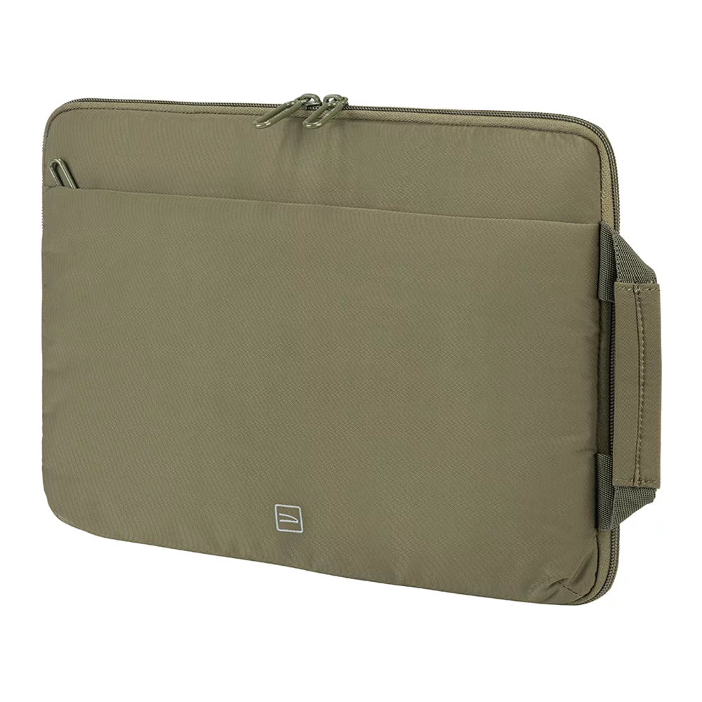 Елегантний чохол для ноутбуків 13-14 дюймів або MacBook Pro 14 дюймів. Блискавка проходить із трьох сторін, дозволяючи повністю розстебнути чохол. Чохол можна використовувати як робочу поверхню, закріпивши кути пристрою двома резинками. Зручна зовнішня кишеня для аксесуарів та бічна ручка роблять виріб дуже функціональним.