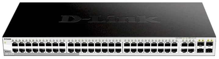 Керований комутатор 2 рівня DGS-1210-52, оснащений 48 портами 10/100/1000Base-T і 4 комбо-портами 100/1000Base-T/SFP, підтримує технологію D-Link Green і розширені функції керування і безпеки, забезпечуючи високу продуктивність і масштабування мережі. Функції керування включають SNMP, керування на основі Web-інтерфейсу і інтерфейс командного рядка (CLI) через Telnet і SSH. Даний комутатор оснащений пасивною системою охолодження, яка забезпечує безшумну роботу і дозволяє продовжити термін експлуатації пристрою.