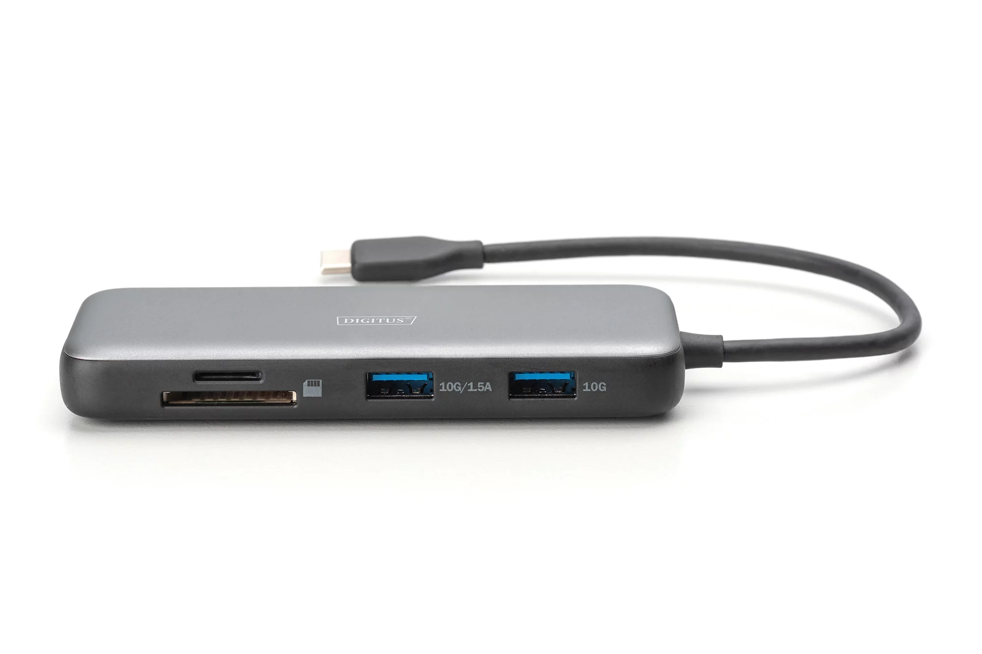 Док-станція DIGITUS DA-70915 — універсальне 8-портове рішення для підключення двох моніторів 4K/60 Гц, швидкої передачі даних через USB-A 3.2 Gen 2, стабільного інтернету через Gigabit Ethernet і роботи з картами пам’яті SD/microSD. Підтримує USB-C Power Delivery до 100 Вт та DisplayPort 1.4 Alt Mode, має міцний корпус і вбудований кабель USB-C 20 см.