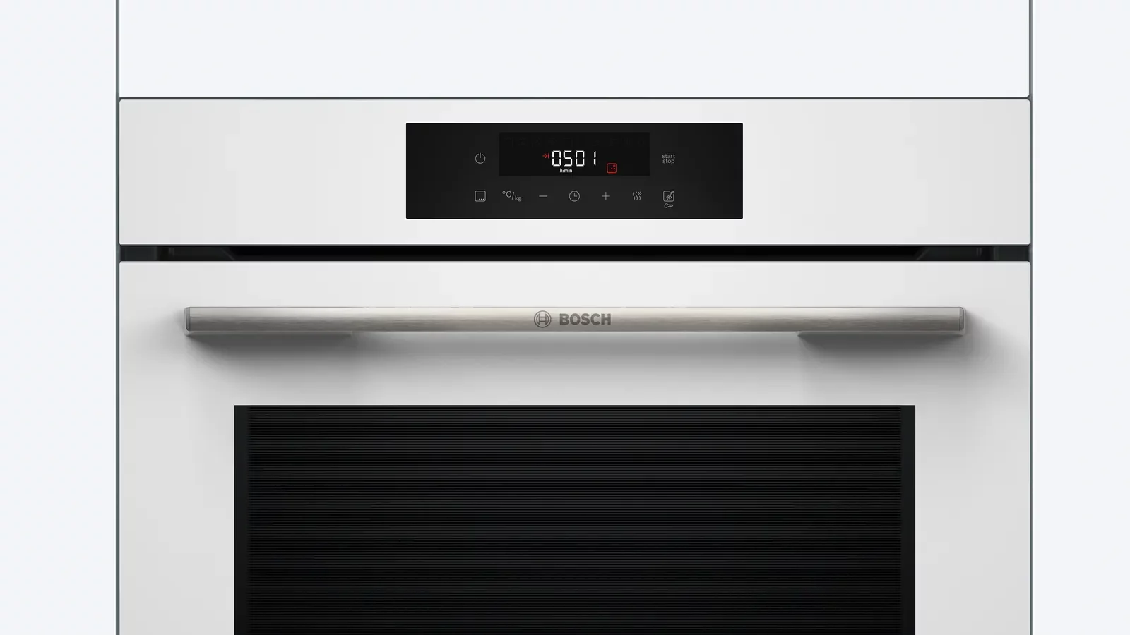 Вбудована електрична духова шафа Bosch XXL (76 л) з класом енергоефективності A, 8 режимами нагріву, функцією Air Fry та AutoPilot 30 для автоматичного приготування страв. Оснащена двома рівнями телескопічних направляючих, сенсорним управлінням, системою плавного відкриття/закриття дверцят SoftOpen/SoftClose та покриттям EcoClean Direct для легкого очищення.