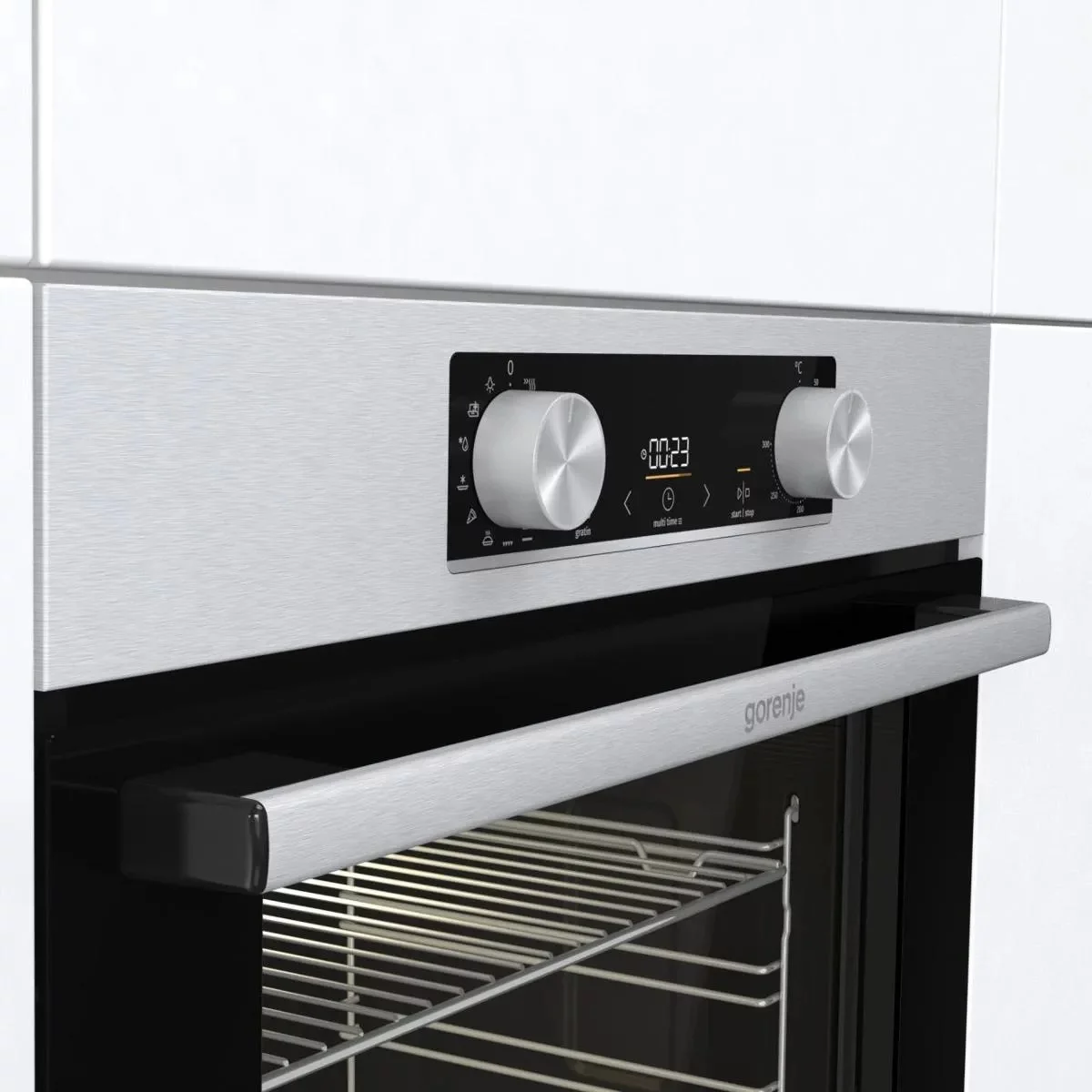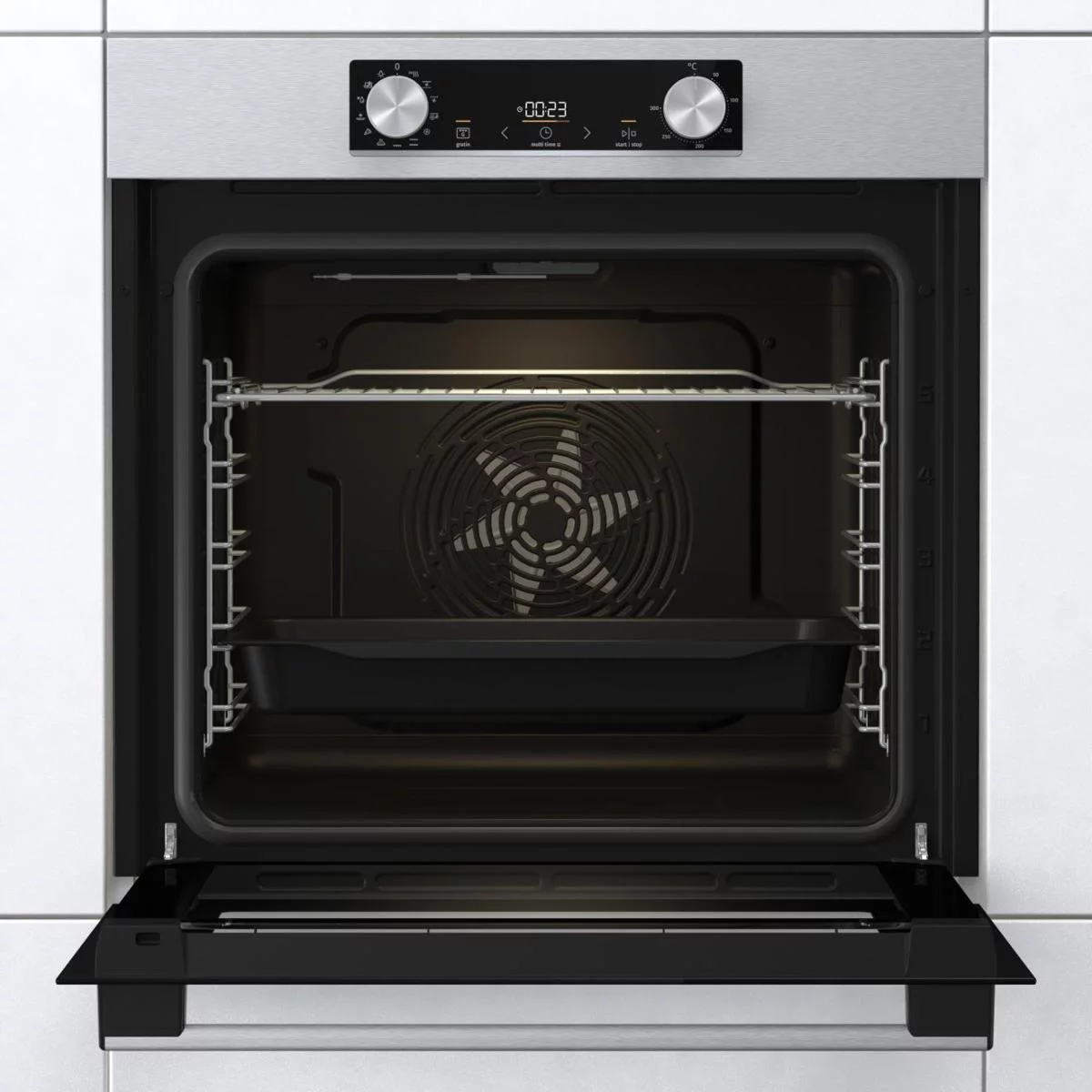 Тепер ви зможете насолоджуватися улюбленими смаженими стравами без зайвих калорій. Інтенсивний метод випікання AirFry у духовці Gorenje з використанням гарячого повітря не потребує додавання жиру для досягнення хрусткої золотистої скоринки. Підходить для смаження малих шматків м’яса, риби, овочів і заморожених напівфабрикатів, як-от картопля фрі та курячі нагетси. Потрібно приготувати дуже багато їжі? Інноваційне рішення дало змогу розширити внутрішній простір камери духової шафи, завдяки чому ви можете використовувати всю її ширину. Тепер кожне деко має більше місця, а завдяки передовим технологіям страви готуються рівномірно на всіх рівнях.
