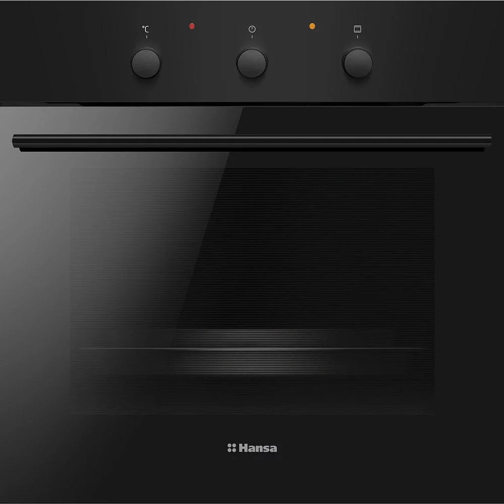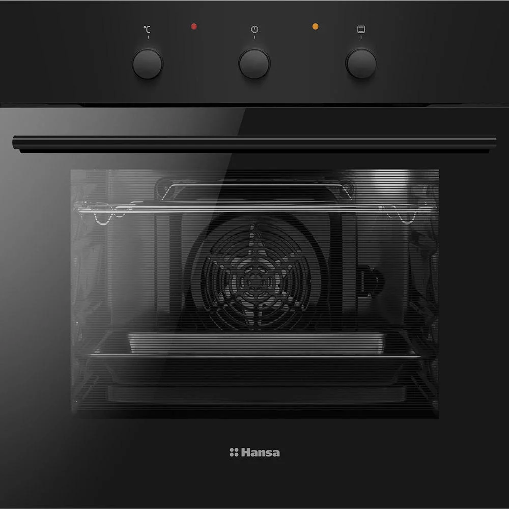 Електрична духова шафа Hansa BOES681021 об’ємом 62 л, класу енергоефективності A, з 8 режимами приготування та грилем 2000 Вт. Має парове очищення, галогенне підсвічування та дверцята з подвійним склом. Чорний корпус з механічним управлінням і швидким розігрівом до 250°C.