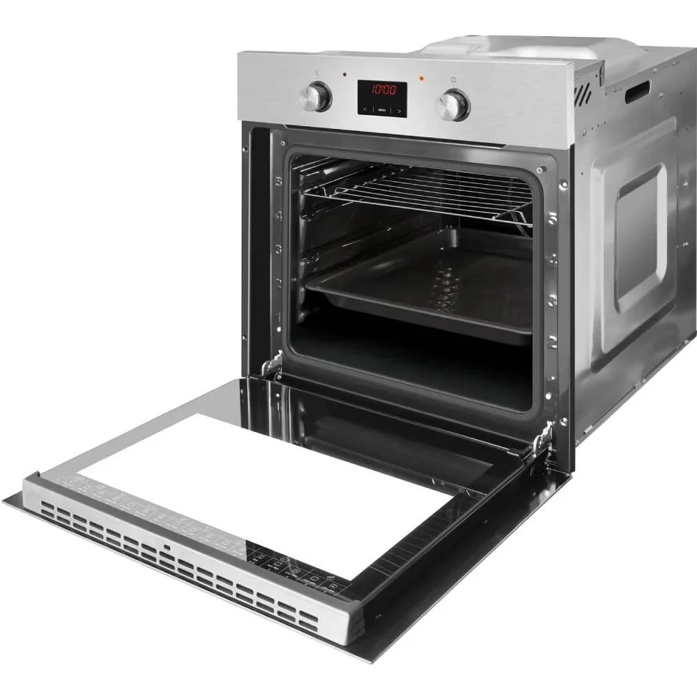 Електрична духова шафа Hansa BOEI68461 об’ємом 62 л, класу A, з 8 режимами приготування та грилем 2000 Вт. Має парове очищення, сенсорне та механічне керування, LED-дисплей і подвійне скло дверцят. Виконана з нержавіючої сталі, нагрівається до 250°C.