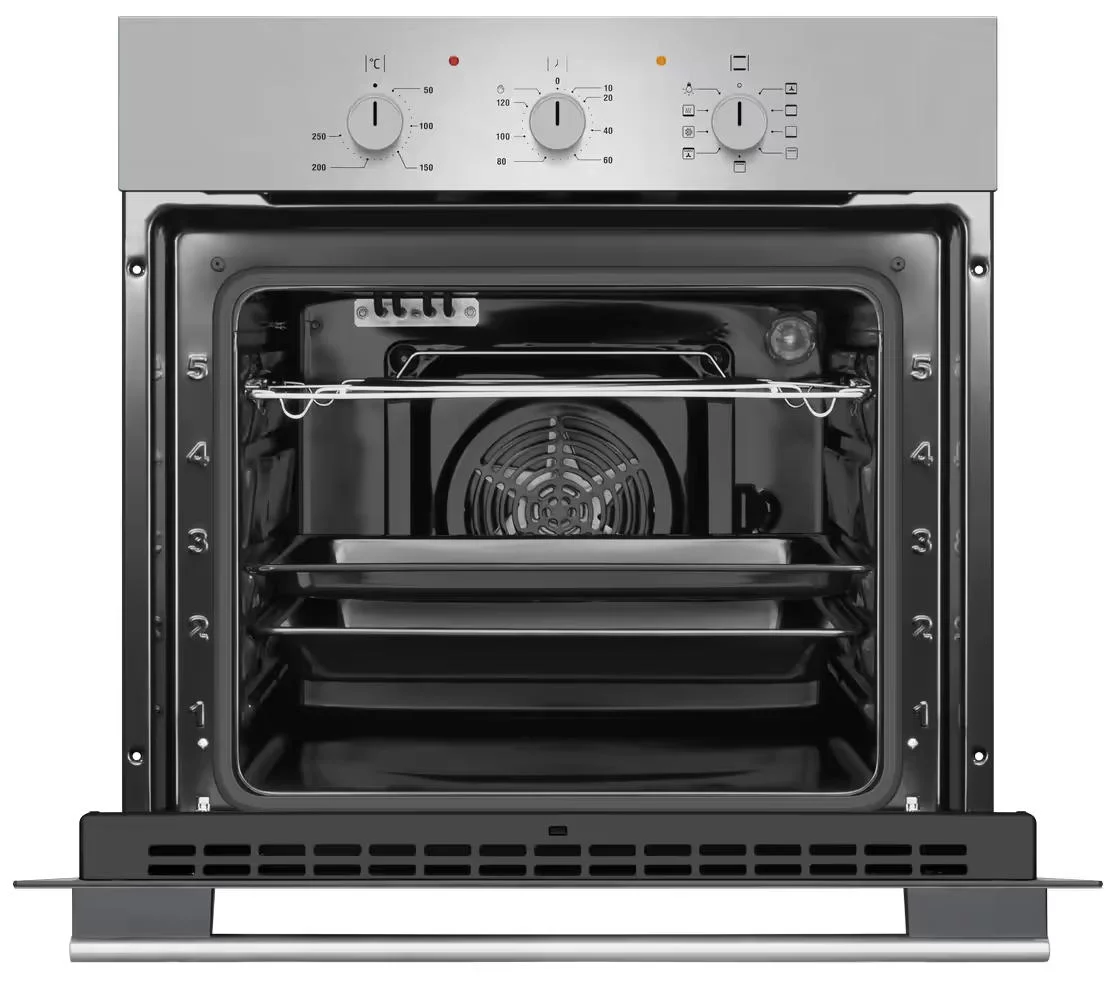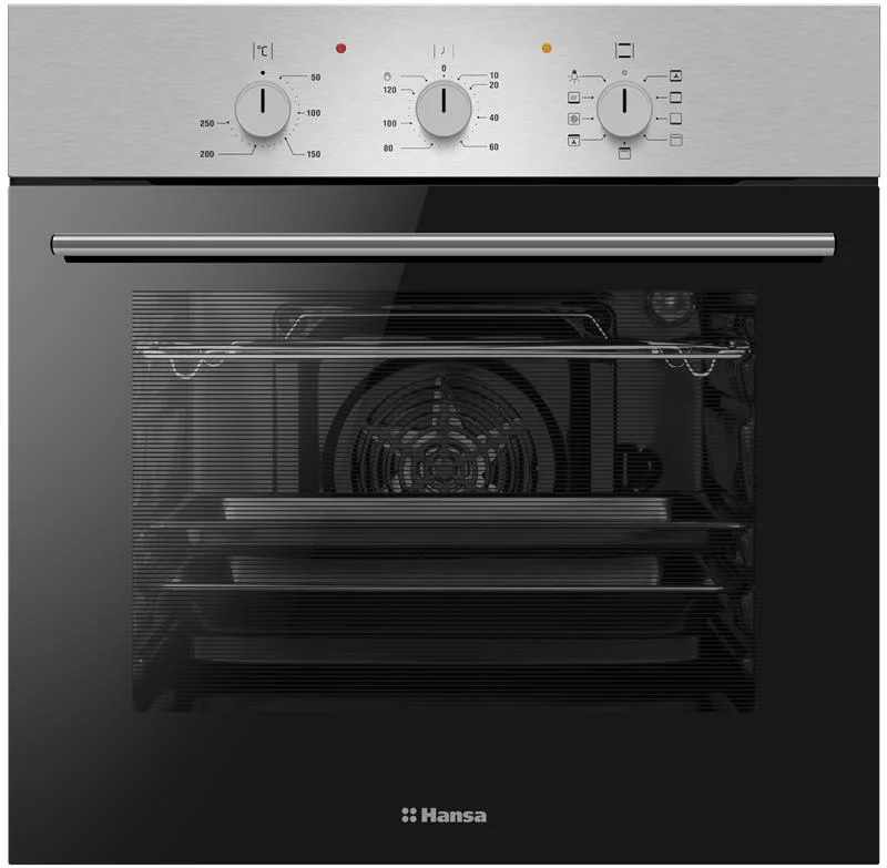 Електрична духова шафа Hansa BOEI681121 об’ємом 62 л, класу A, з 8 режимами приготування та грилем 2000 Вт. Має парове очищення, галогенне підсвічування та подвійне скло дверцят. Корпус з нержавіючої сталі, швидкий розігрів до 250°C.
