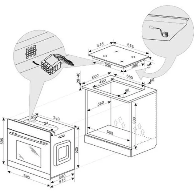 Верхній + нижній нагрів, верхній + нижній нагрів + вентилятор, Верхній нагрів, Верхній нагрів + гриль , верхній нагрів + гриль + вентилятор, Гриль, Нижнє нагрівання, Розморожування, швидкий розігрів