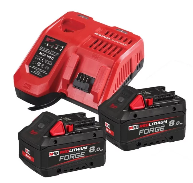 Набір складається із зарядного пристрою, 2x акумулятора M18 FORGE 12Ah та зарядного пристрою M12 - 18 FC
